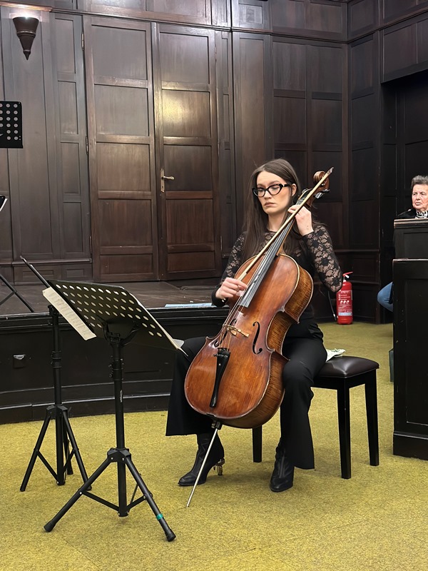Before the start of the concert, Bernarda Pleša gave an introduction to the event and a review of the character and work of Franc Prešeren. On this occasion, we remembered the activities of the Triglav Association from the earlier period, when the "Trio fantastiko" and the children's choir "Mladi Jenkovci" performed at our events and guest appearances in the country and abroad, whose members included Lidija Paulin and Sonja Vojvodic. Lidija Paulin has been a permanent member since 2014 and is now the leader of the cello section and soloist in the Sarajevo Philharmonic. She is the holder of prestigious awards and laureates at international competitions and festivals. She collaborated with renowned musicians such as: Aleksandar Serdar, Konstantin Bogino, Simon Trpčeski, Violeta Smailović-Huart, Eva Šulić, Kanae Endo, Vasily Shcherbakov, Wladimir Kossjanenko, Manhattan String Quartet, Deborah Wong and many others. She is constantly working on improving herself and building a successful international career. She is in the final year of his doctoral studies in Belgrade, and he also works as a teacher at the Banja Luka Academy of Arts.