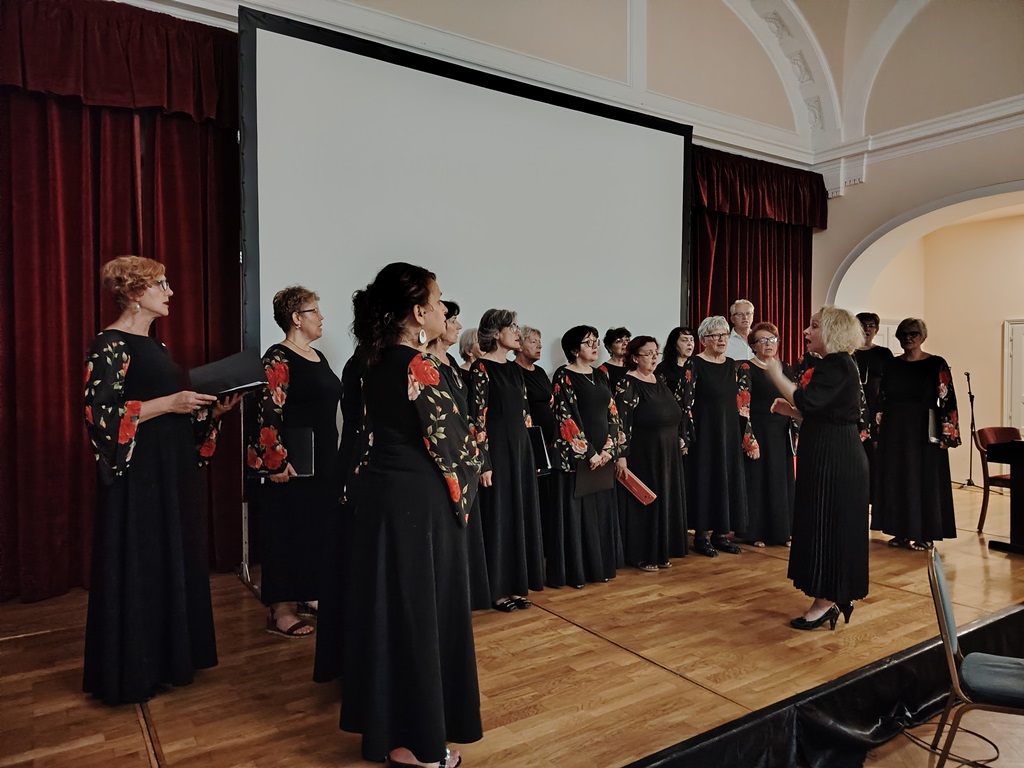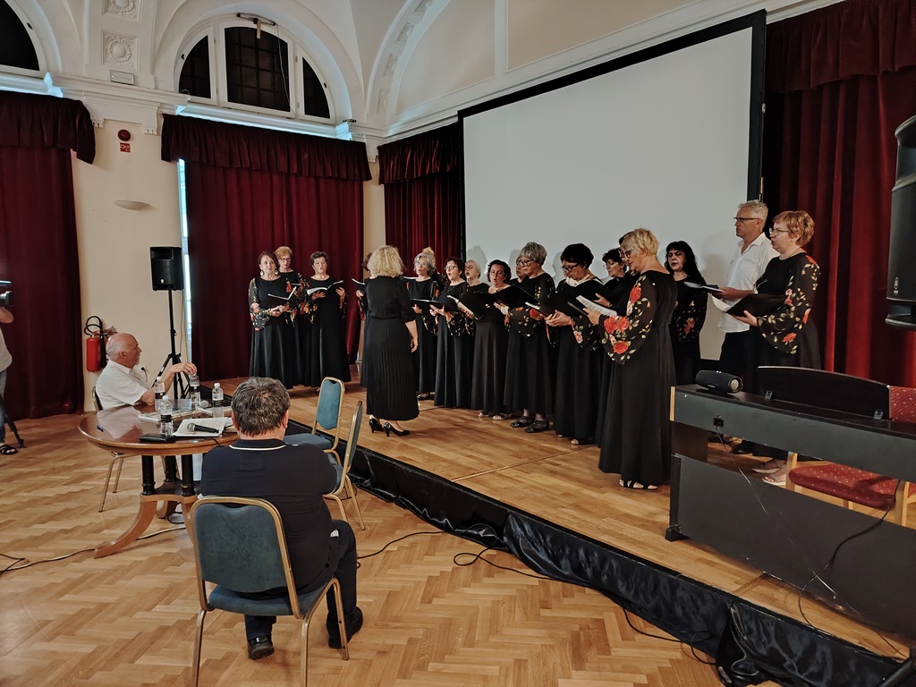 On Sunday, June 30, 2024, we headed to Šentjur. We were welcomed by representatives of the Association and given a short tourist postcard of Šentjur. They proudly showed us the birthplace of the Ipavec family, who were doctors and composers. Along the way, they showed us where we would perform. The folklore group of the hosts, our folklore group and our choir performed. The choir finished the performance with the song "Slovenija zelena", which was also accepted by the audience. And at the end we all danced to the host's orchestra playing a waltz. After the performance, there was a very lively and cheerful gathering with dinner, dancing and singing.