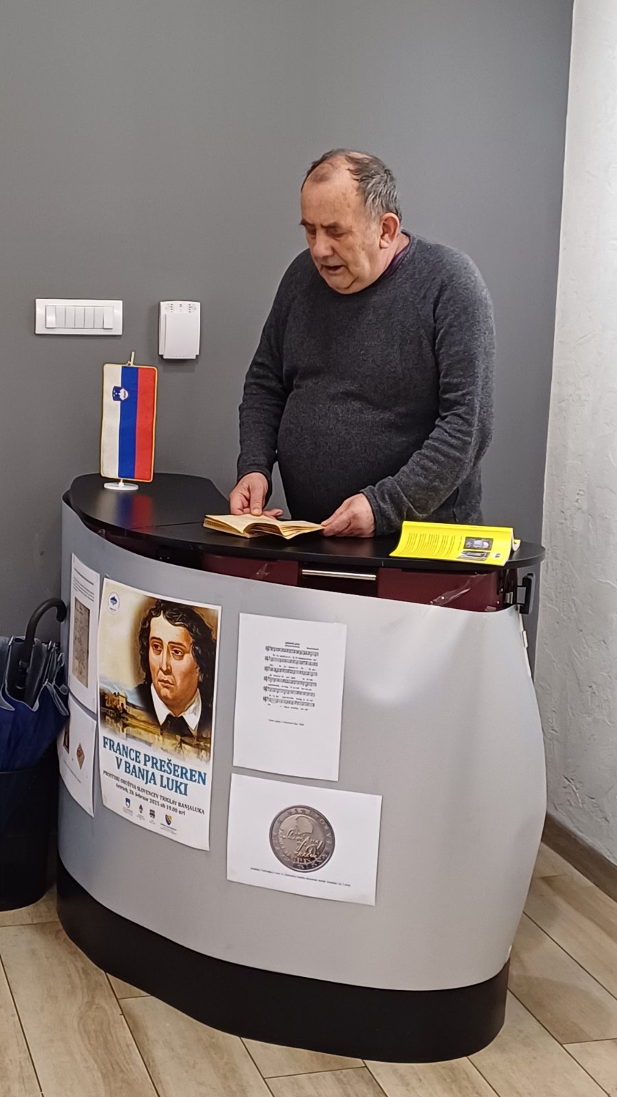 Our Slovenian language teacher Metoda Perger, who is the conceptual organizer of this gathering, introduced us to the Prekmurje poet Feri Lainšček. She read his poem in the original Prekmurje dialect, which aroused our special attention. After that, we heard the Macedonian language in the verses of the poet and revolutionary Koča Racin, which were recited by Zoran and Jelena Mitrovska. The poem by Jan Skacel in Czech was recited to us by Goran Stojković, a member of “Česka beseda”. Mladen Prodan, a member of the Triglav Association, who is also a member of the Patrija Jelovac Homeland Society from Prijedor, recited his verses in Serbian, as did Ljiljana, who introduced us to the little-known love poetry of Petar Kočić, verses addressed to his only love, his wife Milka. I introduced the audience to the Slovenian poet Simon Gregorčič, choosing from his wide opus the humorous "Svarilo" and the defiant, patriotic "Na bregu". The teacher concluded the poetic part of the evening with verses by Tone Pavček.