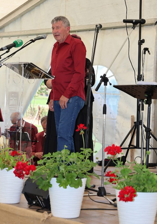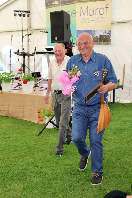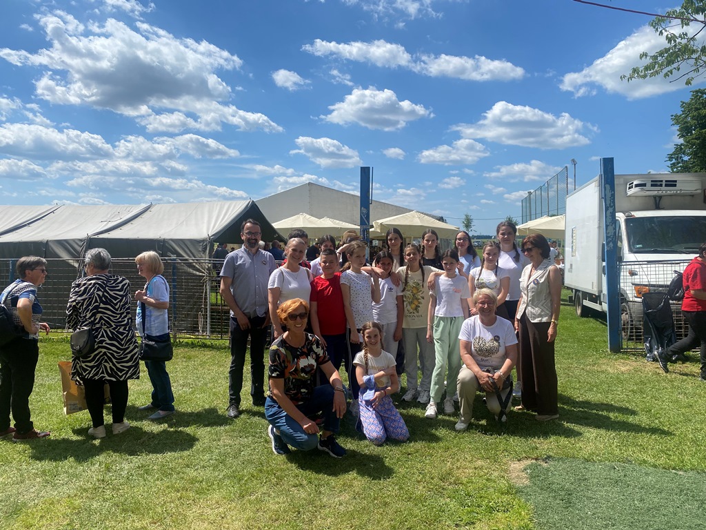 This local community was founded a century ago by Slovenian immigrants from Primorska and Istria, seeking a safer home and place for their descendants, fleeing from the coming fascism and oppression by the new Italian authorities. Sharing a similar fate of descendants of emigrants, our association has been nurturing a fraternal bond with the association "Primorci i Istrani u Prekmurju" for a whole decade, and at the invitation of their president, Nataša Tomšić, we participated and attended the cultural and entertainment program marking their great jubilee. Beside our folklore group, the program included: flag bearers, a brass band, a singing group, soloists and a trumpet trio. The performance of our folklore group attracted a lot of attention from about 500 visitors to the event, and everything took place under a big tent right next to the football field of NK Graničar and the premises of the community center. The program was followed by a pleasant gathering with the already well-known and dear hosts, who warmly welcomed us, whereupon all present were served the traditional dish "bograč". After a tour of the memorial barracks with exposed objects and tools, which were used by the residents of Pince Marof and Benica when they moved to new areas, there was a farewell and then a tour of the sights of Lendava.