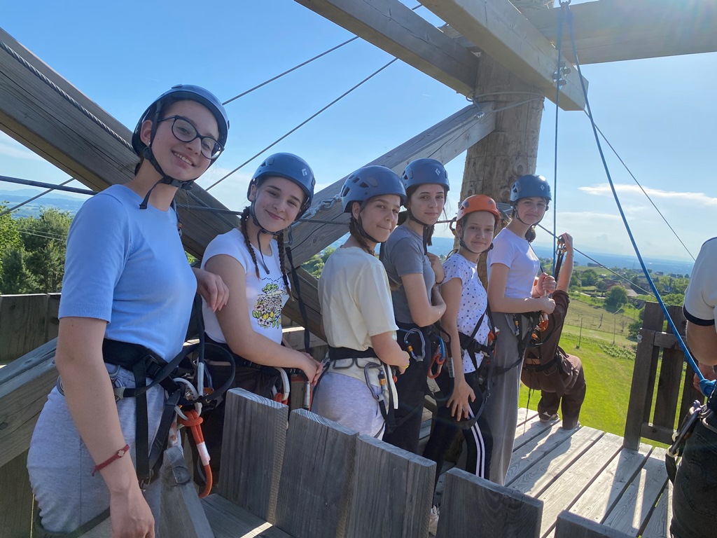 New challenges awaited us in the truest sense of the word - we visited the location of the Lookout Tower, a local tourist attraction that attracts a large number of visitors, because it offers an incredible view of all corners of the world. But our goal was something else. The folklorists were waiting for the zipline descent with mixed feelings of fear and desire for adrenaline excitement. Descending on a 580-meter-long cable, on a double zipline, took place successfully in a relaxed atmosphere, under the guidance of authorized instructors. Happy and satisfied, we headed back to Banjaluka, especially satisfied because of the successful performance and meeting with dear friends.