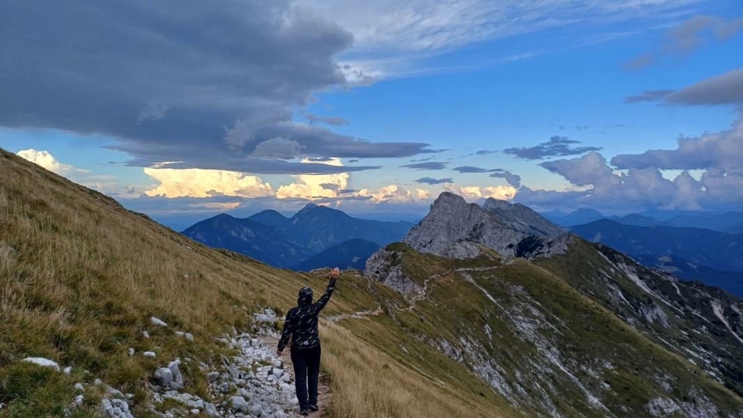 We left Banja Luka early and after four hours we arrived at the starting point, the parking lot in Podljubelj. In a good mood, we loaded our backpacks and slowly set off uphill. Before us was no easy task to overcome about 800 m height difference to Koča na Kofcah. Great weather for walking, we were in no hurry because the backpacks were heavy. After two and a half hours, we arrived at the lodge, which is located in a wonderful place at the foot of Kofca Gora and Veliki Vrh. We forgot about our tiredness when we saw the beautiful ridge of Košuta behind the lodge, our gaze passed to the magical Kamniško-Savinja Alps in the distance and the high rocky Storžič. On the terrace, we quenched our thirst with some cold beer and enjoyed the view of the fairy-tale nature. We could not enter the rooms until 6 pm and after short refreshment we decided to explore the surroundings. That was in the plan, but the weather and the beauty of nature tempted us to go to the top. Refreshed and eager to walk, we climbed to Veliki Vrh. That was just a treat. From the top there was a view of Austria, in the distance you could see Zelov and the top of the ridge in all its beauty. We were proud and happy that we overcame 1,400 m of height difference in one day and enjoyed the unreal beauty of nature. Full of impressions, we returned to the lodge, passed a herd of mountain cows and horses. A true peaceful setting.