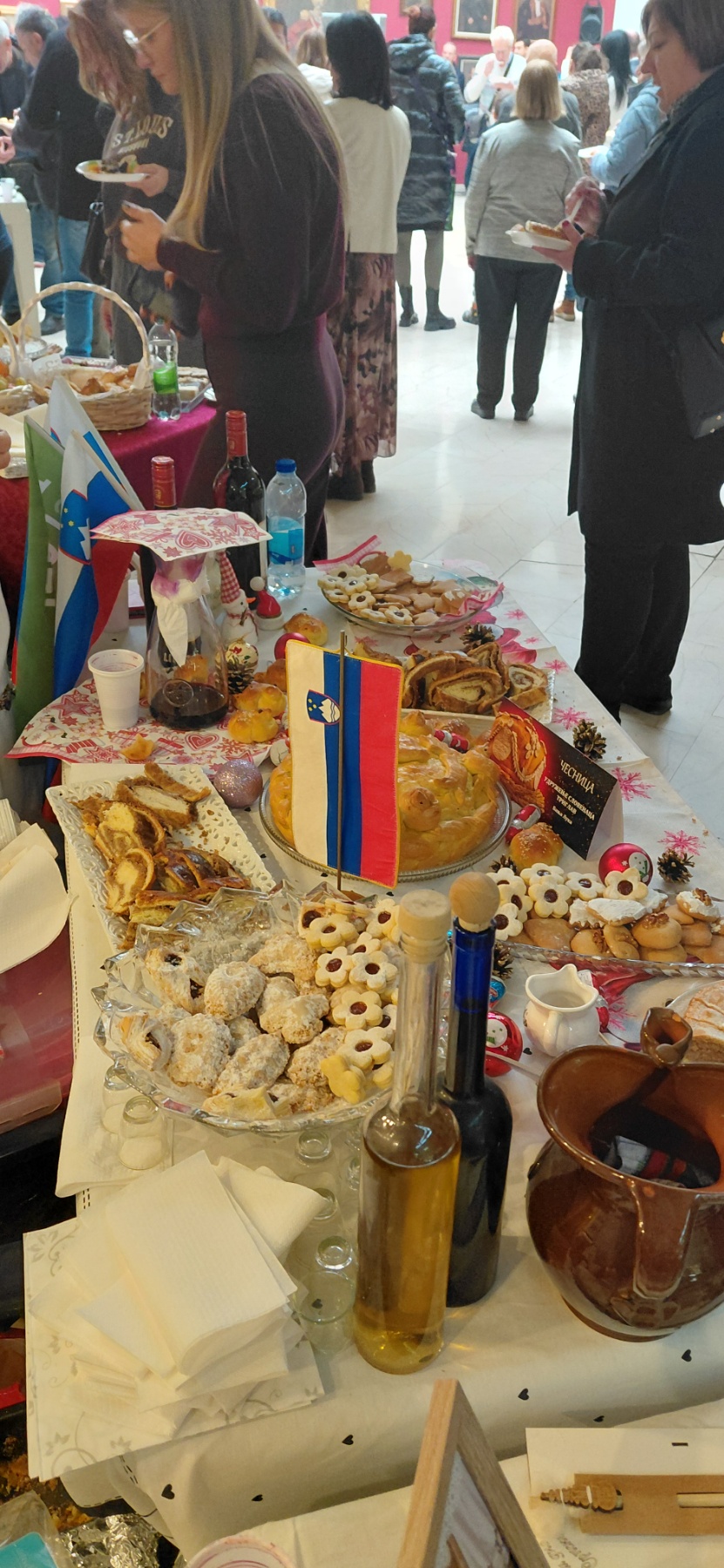 Our culinary section happily accepted the invitation to participate in this Festival. This year, everything was easier to organize, because more of our culinary section members were involved in the preparations for participation in the Festival. The positive energy and goodwill of the participants made our stand very rich and diverse. Olga's excellent wine attracted a large number of visitors. Our hardworking team was led and organized by Bernarda, and the other members: the two indispensable Olgas, Jasna, Dubravka and Ljiljana prepared Christmas desserts: poprtnik, potica, gingerbread, paws, etc.