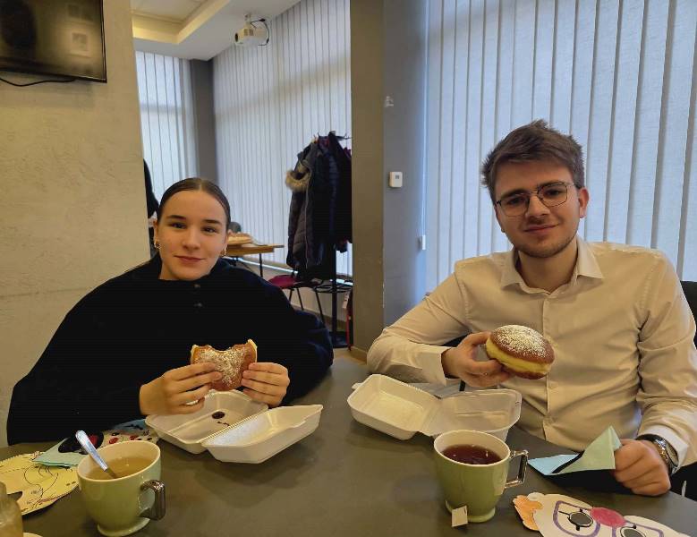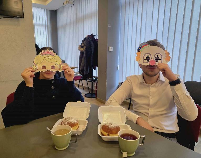 Svaki učenik je zatim oslikao jedan od karnevalskih predložaka i pričvrstio svoj proizvod na zidni pano, koji već neko vrijeme krasi prostorije Udruženja “Triglav”. Na kraju subotnjih druženja uživali smo u velikim i izuzetno ukusnim krofnama. Djelić naše karnevalske atmosfere podijelili su i vrijedni članovi Udruženja, koji su pripremili ukusne zalogaje za izbornu skupštinu Udruženja “Triglav”, koja se također održala 14.2.2026. godine. Također su uživali u krofnama i ljubazno pozirali za grupnu fotografiju.