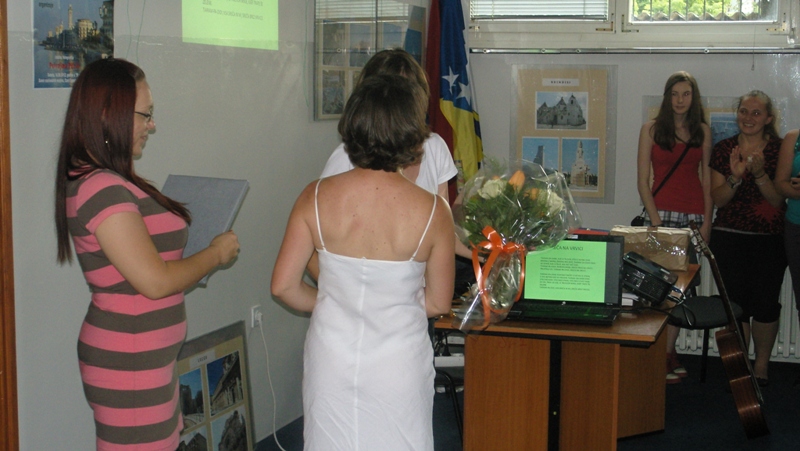 In the group of the youngest pupils, I especially praised young enthusiasts Viktor Perušić and Aleksandra Špehar, who regularly attended the lessons and thus were the most occupied with all out-of-school activities. In the second group, attending the lessons on Saturdays from 9-10.30 hrs, boys were those who stood out taking into consideration diligence and progress in learning Slovenian, namely Mihael Cucek and brothers Aleksandar and Rastko Zrnić. Ivana Lujić has been learning Slovenian for three years and deserves commendation for eager and responsible work at the lessons, while there is also Darko Đukić, who started attending the lessons only this school year and showed almost the most willingness to learn the language and everything connected to Slovenia. In the group of advanced pupils, commendations for a very good knowledge of Slovenian got Jovana Dimitrijević, Vanja Prosen, Marina Šopalović and Borka Srdić, while Aleksandra Rogić deserved praise for regular attendance. In the group of adults I especially praised Marija Petković and Evelin and Dušica Drinić for eager diligent work and regular attendance.