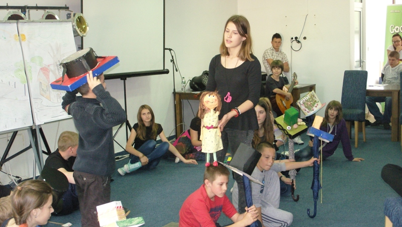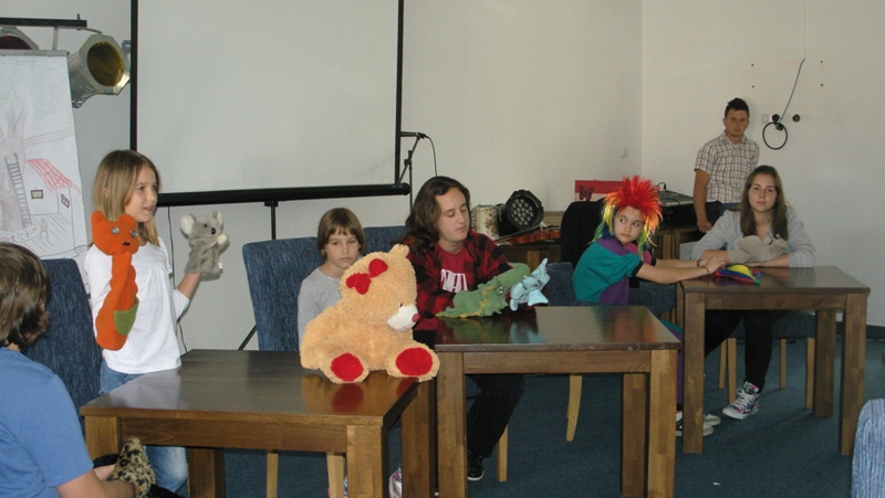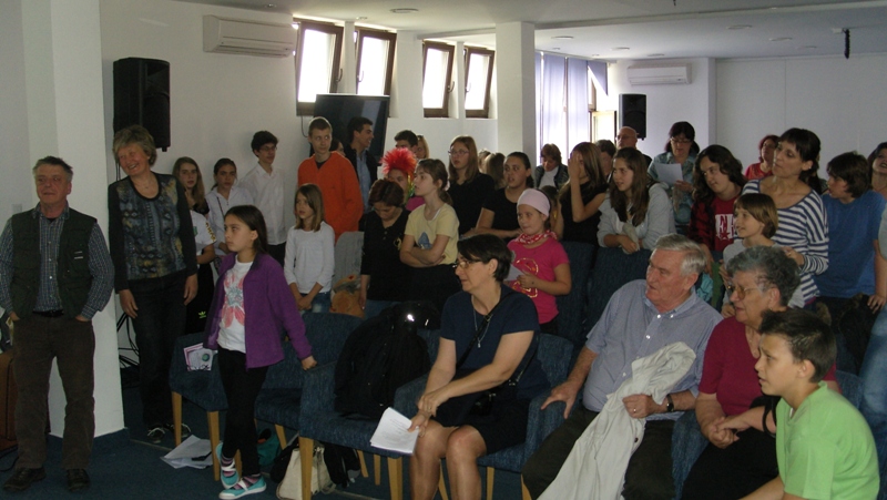 On Saturday evening we had a visit – poet Andrej Rozman Roza joined us and inspired us with his performance. On Sunday morning the students of the Supply Teaching Lessons of Slovenian made the performance. Students from Slatina made a puppetry game „Petelinček in čudežni mlinček“, elementary school students from Banja Luka performed „Moj dežnik je lahko balon“, secondary school students from Banja Luka prepared impressions from the excursion – the presented the Soča River and a recital of poems by Simon Gregorčič.