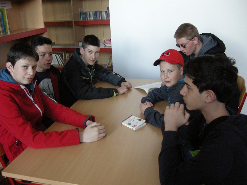 On Sunday, April 24, our pupils, together with students and other participants to the excursion visited the Technical Museum of Slovenia. Following the tour, they went to their peers and in the morning together to school. They were warmly greeted at school and after the lessons the parents of their hosts made sure they had a pleasant afternoon. On Tuesday morning also came others and we were welcomed by librarian Tina Janc, who also organised the exchange of pupils, and principal of the school Matjaž Zajelšnik. Librarian Tina presented each pupil with a book by Simona Lečnik Slovenian Language and I, book about how learning Slovenian is not that simple. Vice president of the Association of Slovenians Triglav Nataša Kajmaković thanked for the cooperation to the principal and librarian on behalf of the Association.