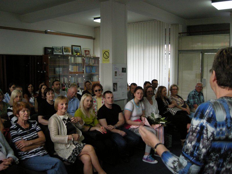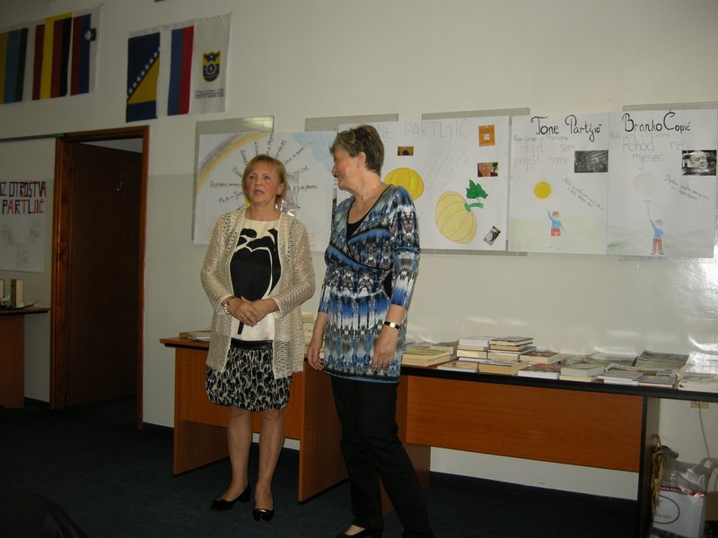 We were visited by two guests from Slovenia - Tone Partljič and Božena Kolman Finžgar. On behalf of the Association of Slovenians Triglav Banja Luka they were greeted by Marija Petković. Slovenian author Tone Partljič prepared an interesting programme, including the performance of students as well, while Božena Kolman Finžgar from the Library of Anton Tomaž Linhart from Radovljica distributed certificates for participation in the project Library – Universe of Treasure. Cooperation with Readers Badge Association and library from Radovljica has been traditional, whereas there are many good readers among adult attendees, eight of which won readers badge, and six received certificates of Library – Universe of Treasure. They also received book awards and aprons. Božena Kolman Finžgar brought many books and magazines to students to prevent the lack of interesting reading material during summer. We are happy to have had June evenings full of stories by Tone Partljič, and his lively story-telling.