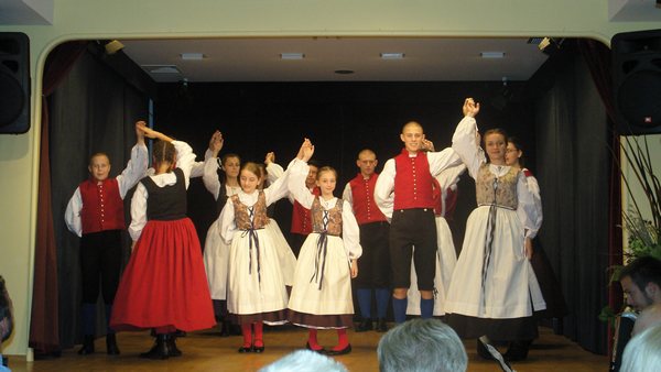 The joint concert took place in the evening. Their choir sang the welcome song and there followed the welcome speech by Vitomir Vitez, who was in charge of successful work of the Association Bazovica in the field of culture. This was followed by the performance of children folklore group, our choir “Davorin Jenko”, exchange of gifts and a thank you speech by vice-president of the Association “Triglav” Nataša Kajmaković. At the end of the successful concert our choir surprised the audience singing the song of inhabitants of Rijeka and Slovenians living there.