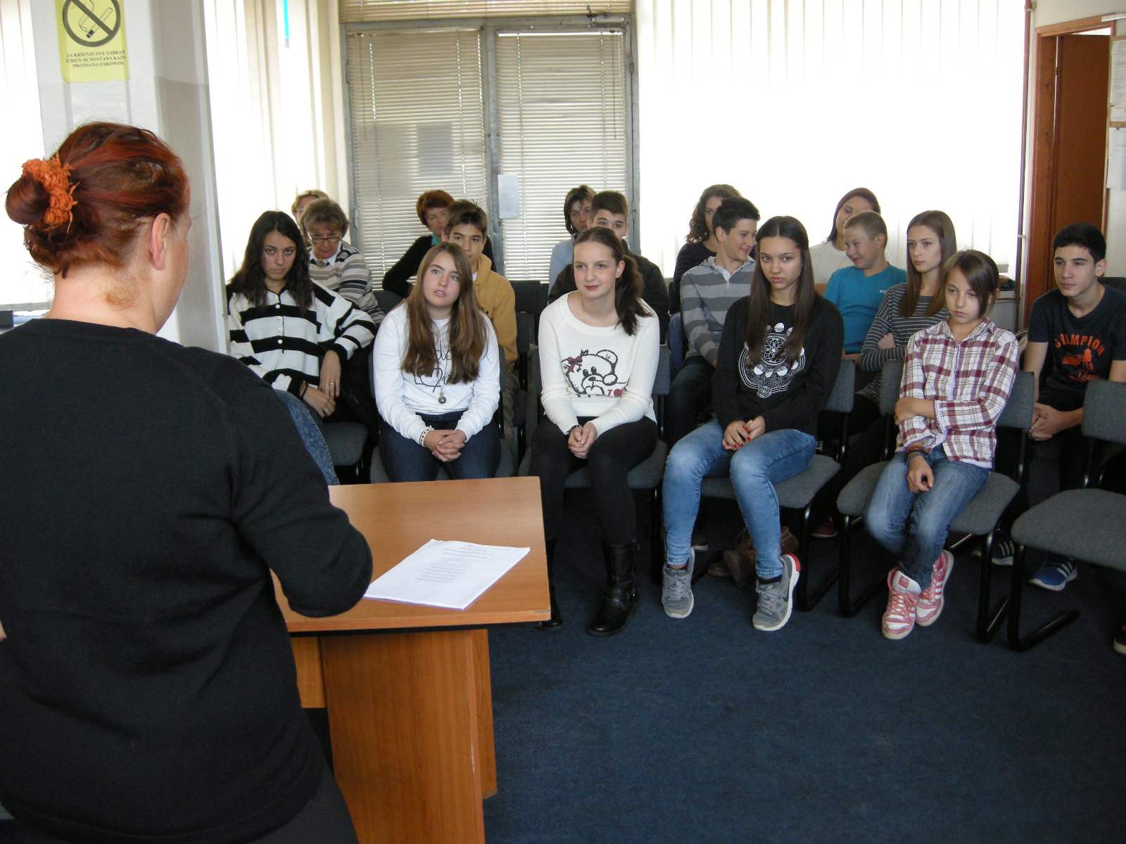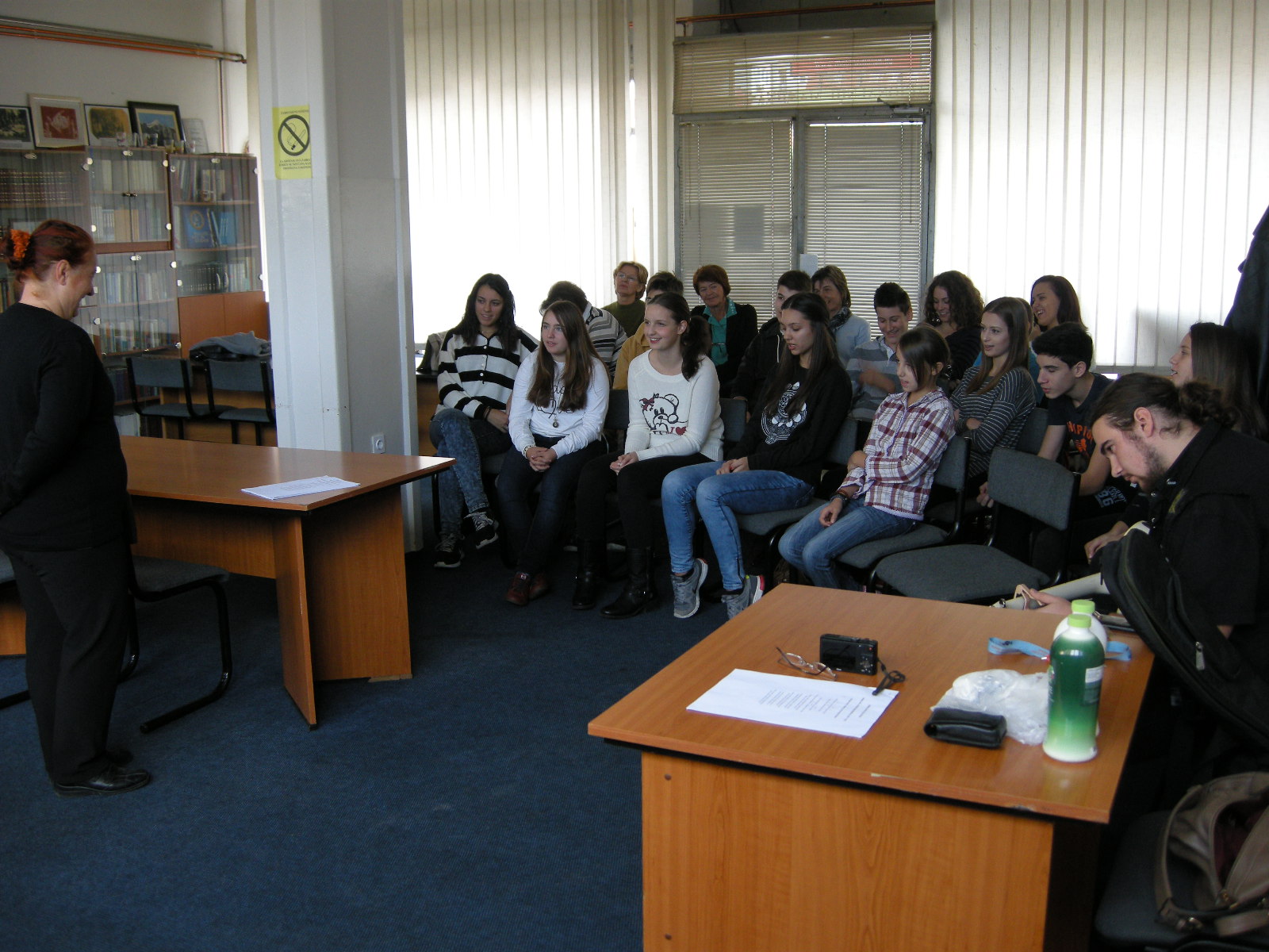 The last Saturday in October was festive. Slovenians do not mark only 1 November, All Saints Day, but also 31 October, Reformation Day. We remember Primož Trubar, author of first Slovenian books, as well as other protestant writers. Reformation period means the beginning of Slovenian literature, that is why the Reformation Day is a cultural holiday. We dedicated time to singing during supply teaching lessons. Professor Natalija Veselič Martinjak moderated two workshops: the first one for children and the second for youth and adults. Žan Žak Martinjak played a guitar accompanying the event. Children learned two songs „Ni copatka“ and „Enkrat je bil en majhen škrat“, while youth and adults learned „Mrtva reka“.