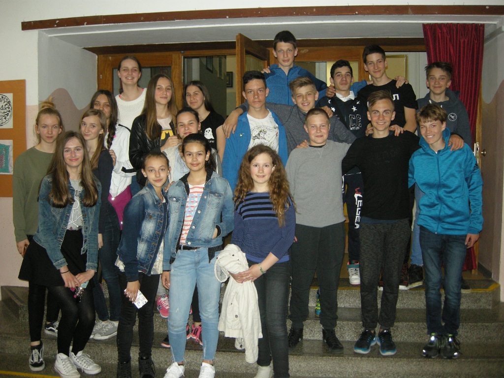 Visit to Elementary School bratov Polančičev was prepared by psychologist Darko Hederih, who has cooperated with the Association of Slovenians Triglav for quite some time. Without the support by principal Brigita Smogavec the exchange of pupils and students could not be organised. Visit to First Grammar School was prepared by principal Herman Pušnik and teacher Miha Debenak. Members of the Associations visited both schools and thanked for the hospitality. In the First Grammar School we attended a very interesting play »Animal Comedy« that the students prepared together with the mentor of Theatre School of First Grammar School Maribor Barbara Jamšek.