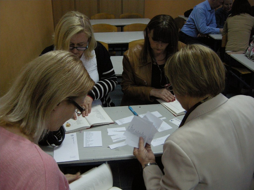A message on the occasion of 2 April was prepared by Russian section of International Board on Books for Young People. Author Sergey Makhotin entitled it “Let us grow with the book”. We read the message as an introduction to the Book Night. We designed the event as inter-generational reading, the youngest reader was a pupil, and the eldest reader a retired lady. Pupils and students got cut-through poems by Saša Vegri, and worked in groups to identify the right titles of poems and put them as a whole. In the collection of poems “Armful of stones” they selected poems that made the strongest impression on them at first reading – some because of the message they carry, others because of humour, play of words and gentleness. Each person decided for one and presented it. Poems by Saša Vegri address the readers of different age, and that is why they were a great choice for inter-generational reading. Thank you to the association Reader’s Badge of Slovenia that presented the books to us. Therefore, the pupils and students of supply teaching lessons of Slovenian will have further possibilities of enjoying good poetry.