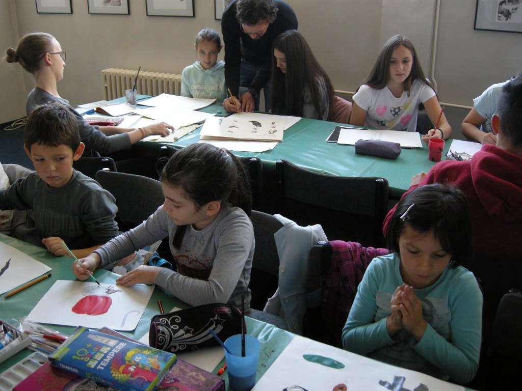 Peter Škerl led the pupils and students through the fine arts. Each of them received own letter and used watercolours to paint object beginning with that letter. There appeared some very nice works that will be exhibited at traditional Martinovanje.