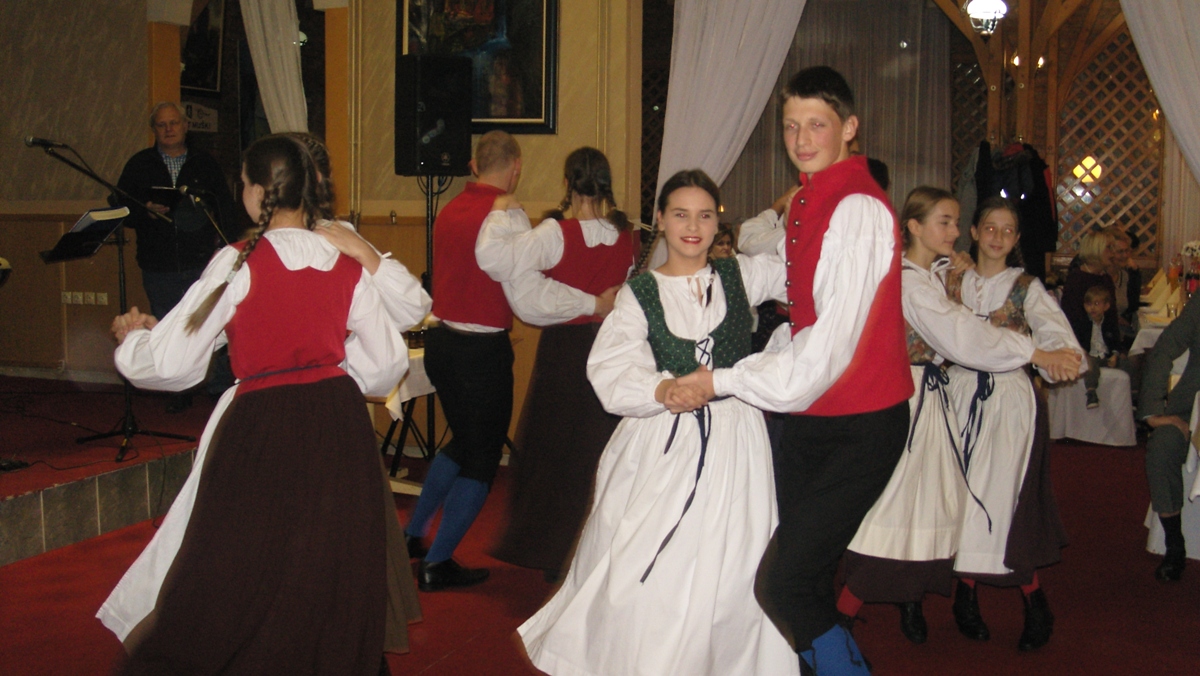 The Children Folklore Group of the Association »Triglav« performing a set of Slovenian dances started the programme. It was conducted by Pavle Ravnohrib who first invited a representative of the Association Ms. Ana Marjanović to welcome the attendees. It was followed by the speech by the head of Consular Office of the Slovenian Embassy in Banjaluka Mr. Marjan Ristič. After that, the attendees were greeted by Mr. Sergij Pelhan on behalf of Slovenian Migrant Association who donated books to the Association. This was followed by the custom of baptising the wine.