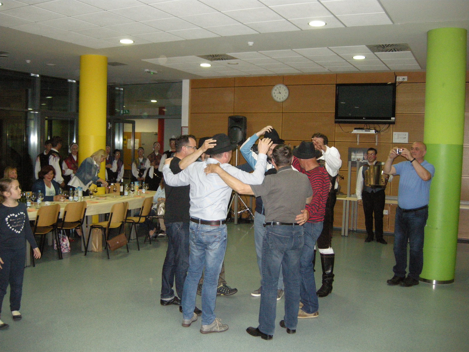 Cooperation with our hosts in Kranj will continue while on Friday evening we had a chance to get to know them better. In Grammar School France Prešeren they prepared us dinner and cultural programme. Folklore group Iskraemeco made performance. They showed us dances of Gorenjska and explained parts of national costume of Gorenjska. They taught us dance of Bela Krajina and made us all laugh with the old folk game of hat exchange. Competitors take the hat from neighbour’s head and put it on own head. This is all done in the rhythm of music. When one of the competitors is out of the rhythm he/she is also out of the game. Members of Association Triglav tried the fun game, too. Excursions always bring new experience and events we will never forget. There also remains memory of beautiful buildings, area and stories of people who live there.
