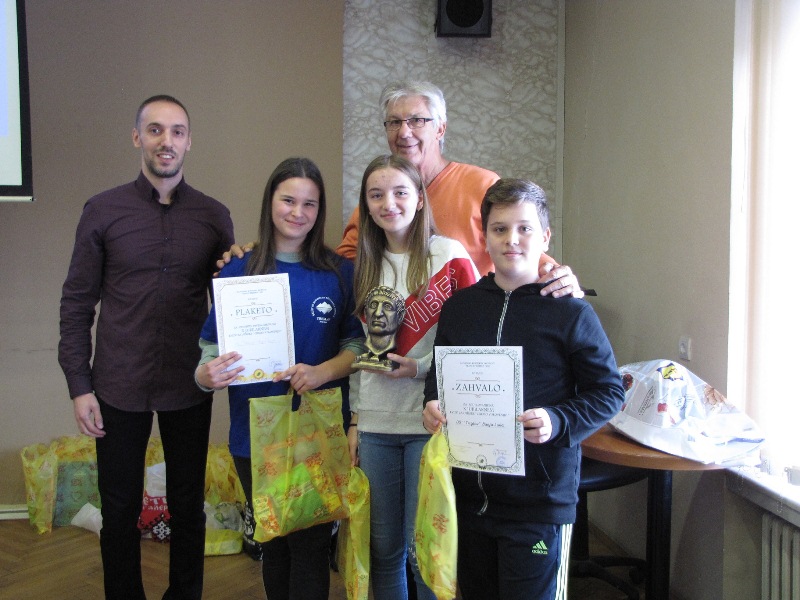 On Saturday, 10 November 2018, Elena Lunić, Nikša Perušić and Mirjana Makivić participated in the quiz for children “Let’s go to Slovenia” taking place in Niš Cultural Centre. Our pupils won, got a plaque and statue for winning the first place, a thank-you letter for taking part in the quiz and also presents from the Slovenian cultural community France Prešeren from Niš. On Sunday they visited the Zoo in Belgrade and happily left home.