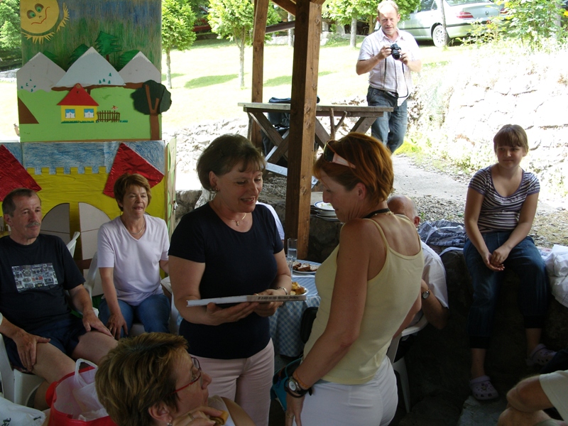 On Friday, 22 May, we organised a one-day excursion to the canyon of the Vrbas River. We observed a part of the world championship in rafting, and then we went to socialise in Rekavice. The excursion to Rekavice was used for sport and art purposes. Our students of the Supply Teaching Lessons of the Slovenian Language, together with the guests, prepared a short programme. The Association of the Slovenians “Triglav” from Subotica was presented by a puppet group “Klopotec”. Children from our Association presented themselves with recitals, while those from Trbovlje told two fairytales and sang interesting Slovenian songs. Additional entertainment was seen to by “Popotniki” and the nice accordion player from Novo mesto.