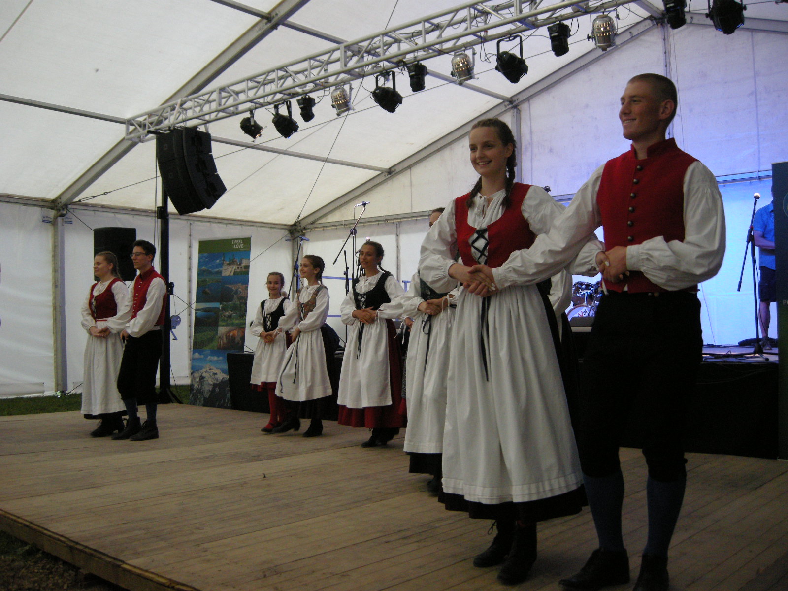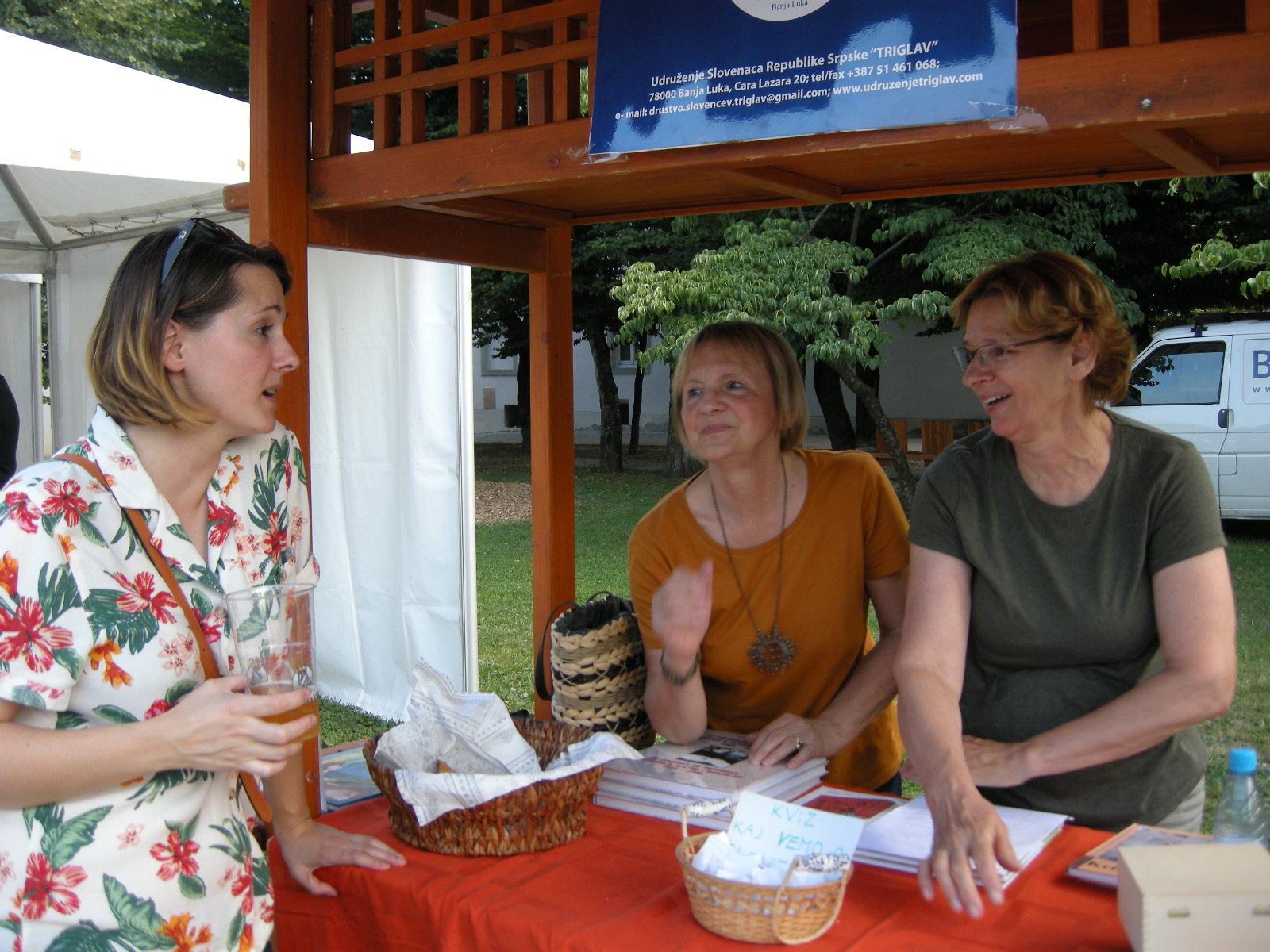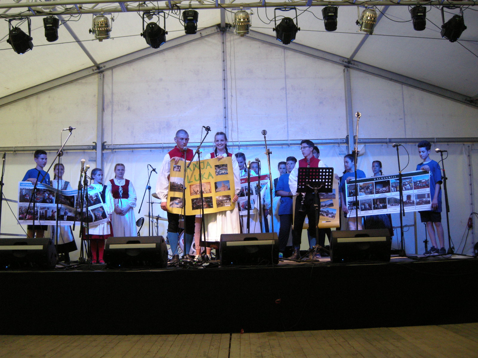 Members of the Association of Slovenians Triglav always visit the Welcome Home event. They presented their newsletters and bilingual books on a stand at City Park and invited visitors to solve a quiz What do you know about Slovenia? Many passers-by showed their knowledge, had an apple cake and talked to the students of supply teaching lessons of Slovenian from Slatina, who organized the quiz. The cultural program began with the address of Karla Urh, Mayor of Radovljica, Ciril Globocnik and Vice-President of the National Assembly Commission for Relations with Slovenians Abroad. Minister for Slovenians worldwide, Peter Jozef Česnik, also welcomed the gathering and stressed that he had been an expatriate for more than three decades. On behalf of the President of the Republic, Borut Pahor, the speech was given by Academician Boštjan Žeks, who was himself Minister for Slovenians Abroad. The first to perform were young people from Argentina, followed by Slovenians from Sweden and other European countries. The youngest were performers from Banja Luka and Slatina. Members of the folklore group of the Association of Slovenians Triglav danced, and students of supply teaching lessons of Slovenian presented the work of the Association and their thoughts on the homeland. Since the Association is called Triglav and because they performed among the mountains, the performance ended with the song Na planincah.