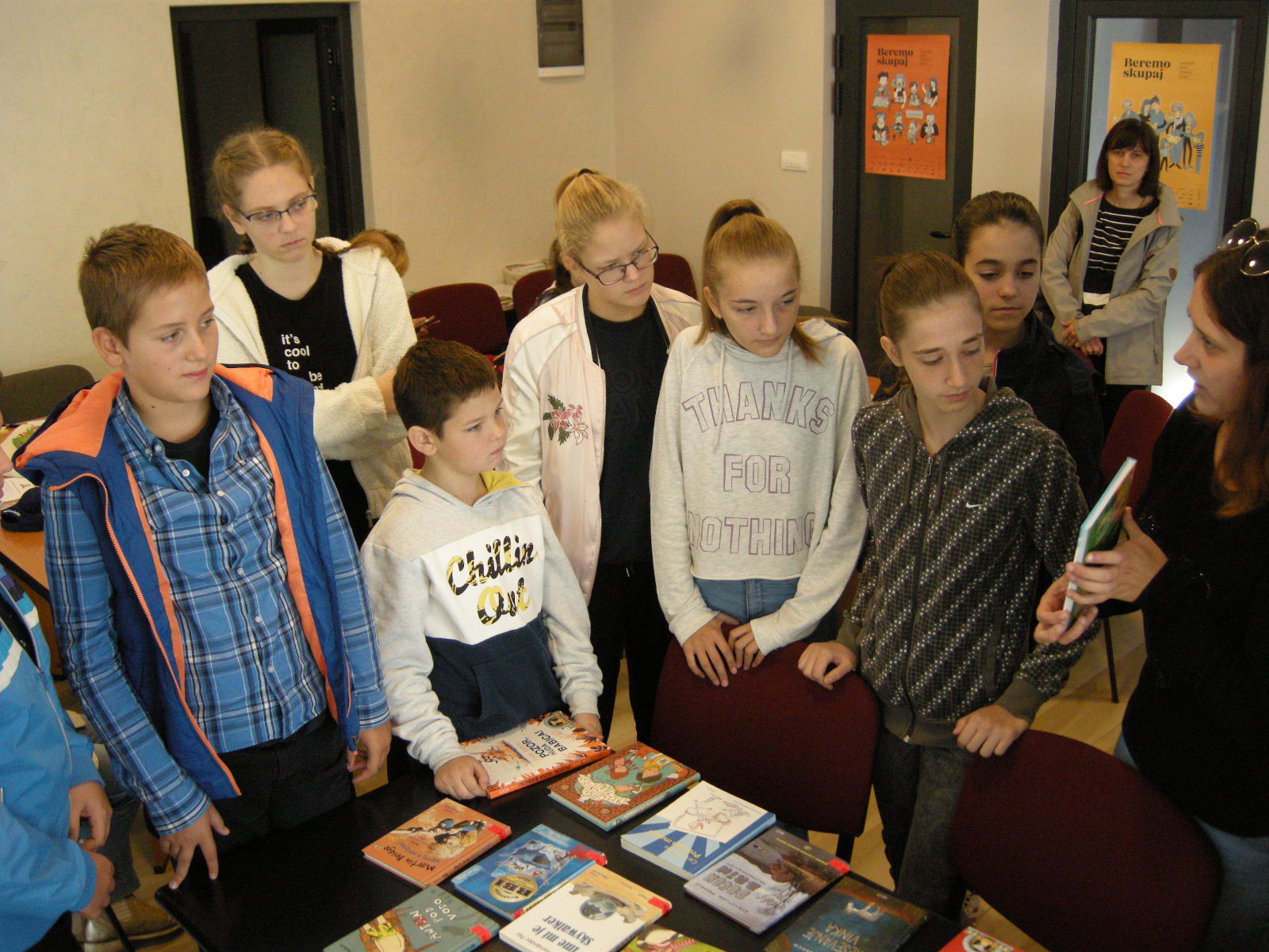 The first event was organized in cooperation with the Central Library Srečko Vilhar Koper. Librarians Urška Bonin and Tjaša Jazbec together with library director David Runk visited students of supply teaching lessons of Slovenian in Slatina and Banja Luka. They presented the project of Rovka Črkolovka. It is a reading competition, in Slovenia it is intended for students in grades 5 and 6, students from Italy and Austria are also participating, and this year for the first time students from Bosnia and Herzegovina also participated. The competition will include two groups: students from Slatina and students from Banja Luka. Since their knowledge of the language is not the same as the knowledge of the Slovenian language of peers in Slovenia, we will choose shorter books supplemented with illustrations. Our students will also rate the books they have read and write down their comments. During the class we will discuss the content of the books read and also illustrate the texts.