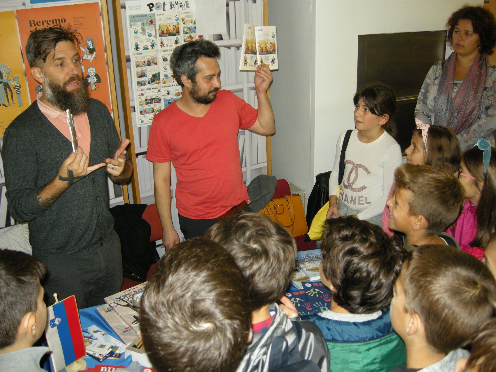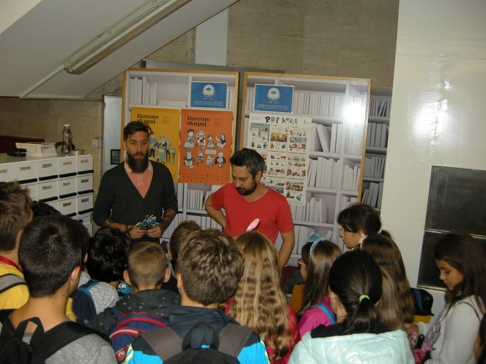 The Journey of a Book was presented in the morning at the Language Fair at the National and University Library in Banja Luka. We were the first to be visited by 5th grade elementary school pupils of Elementary School Branko Radičević with teacher Vanja Perić. The authors Žiga X Gombač and David Krančan presented the journey of the book from the author to the reader, while the students handled the worksheets. Throughout the afternoon, the two authors met with young readers who eagerly listened to the stories of the book moth. The Slovenian authors performed in the afternoon at an event that brought together speakers of ten European languages at the National and University Library: Serbian, German, English, French, Russian, Greek, Spanish, Italian, Czech and Slovenian. The aim of the European Languages Day is to emphasize the importance of multilingualism, and one of the languages heard at the events in Banja Luka is Slovenian.