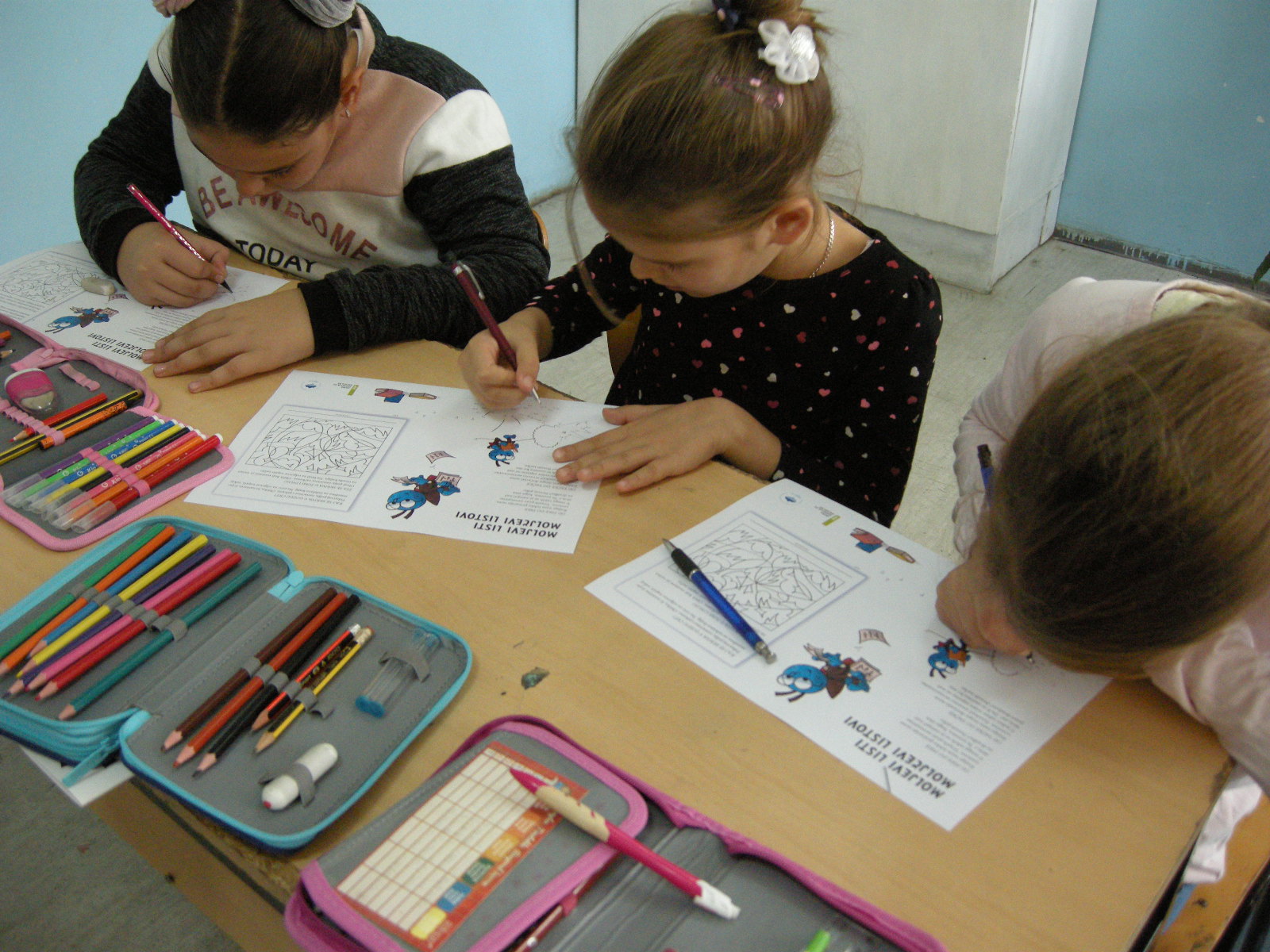 The third grade pupils listened with interest to the story of the book moth, learned about books that the blind and partially sighted read, and how to approach the deaf by gesturing. Students of supply teaching lessons of Slovenian assisted younger pupils in solving the worksheet. Encouraging reading is an important task for the school, so the book moth, with greetings, wished everyone much joy with good books.