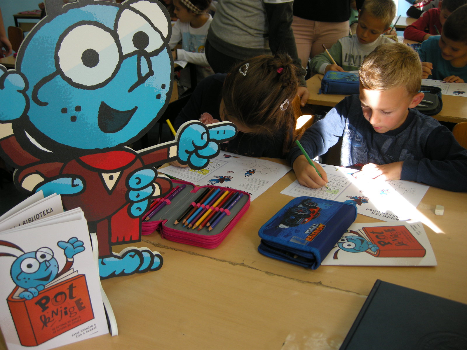 The mascot, which tells us how the book was made, came from Ljubljana - from the Public Book Agency of Slovenia, so he spoke Slovenian. The students of the supply teaching lessons of Slovenian Katja, Gabriel, Lucius and Stefan translated his story into Serbian. The story is written in the comic book The Journey of a Book, written by Žiga X Gombač and illustrated by David Krančan. The Association of Slovenians Triglav Banja Luka made sure that students who do not understand Slovenian now have a bilingual edition of this booklet.