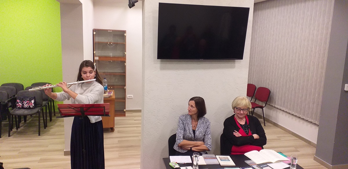 Jadranka Matić Zupančič's greatest love is, of course, poetry, which she writes in both Croatian and Slovenian. At the literary evening, the latest, fifth collection of poems, entitled Sound Tapestry, was presented. The poems are written in Croatian, while the second part of the collection contains translations by Nataša Petrov into Slovenian. The author and the moderator read some poems in both languages, and the evening was accompanied by two solo flutes performed by Sofia Koščica and Kristina Kasagić, students of the Secondary Music School in Banja Luka. The festive program was followed by a pleasant socialising of participants and visitors.