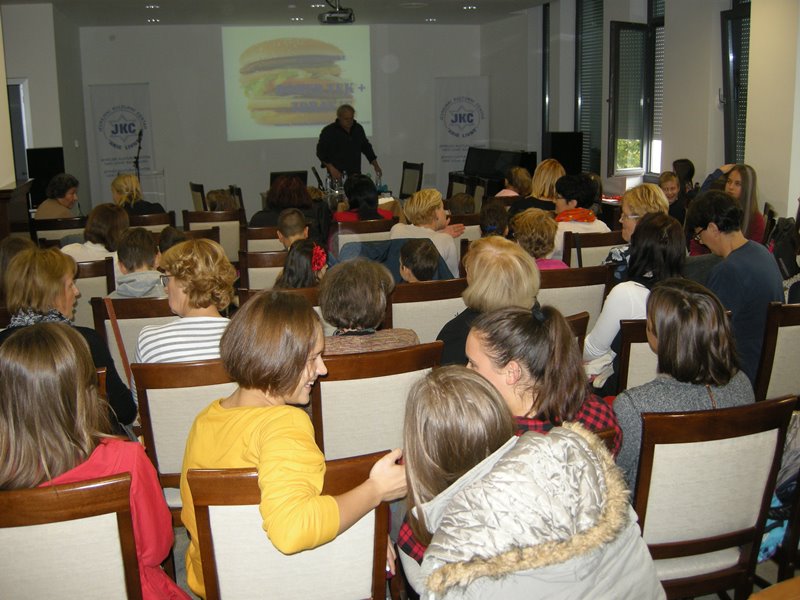 V soboto, 17. oktobra, so se v Jevrejskem kulturnem centru v Banjaluki zbrali učenci dopolnilnega pouka slovenščine iz Niša, Novega Sada, Sarajeva, Kaknja, Zenice, Tuzle, Teslića, Prijedora, Slatine in Banjaluke. Pomerili so se v kvizu na temo hrane, vprašanja pa so bila povezana tudi z vplivom hrane na zdravje in s pripomočki, ki jih ob pripravi hrane potrebujemo. Kviz sta pripravila in vodila Pavle Ravnohrib in Darko Hederih, ki ju v Banjaluki že dobro poznamo, saj sta prišla že tretjič. Prvo leto so učenci tekmovali v poznavanju živali, drugo leto je bila tema kviza šport, letos pa sta kviz naslovila Abeceda: dober tek! Učence dvanajstih ekip so spodbujali vrstniki in tudi odrasli. Prav za vse so bila vprašanja zanimiva in vsak je sam pri sebi razmišljal, ali pozna odgovor. Ob pripravah na kviz so se učenci veliko naučili in vsi smo se strinjali, da so na kvizu pokazali odlično znanje. Zmagala je prva banjaluška ekipa, ki so jo sestavljale Ana Katalina, Iva Potkonjak in Aleksandra Zrnić.