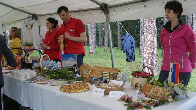 Star pregovor pravi, da po dežju vedno posije sonce, in tokrat je tako resnično bilo. Slatina v katero so se doseljevale številne slovenske družine v različnih obdobjih, pretežno iz Krasa in Primorske je bila skupaj z nami pripravljena za sprejem gostov. Šotor s stojnicami na katerih so svoje proizvode pokazali in ponujali Merkator, KUD Piskavica, Društvo žena »Osmjeh žene« iz Laktašev in gostitelj, Društvo Slovencev »Triglav« Banjaluka.