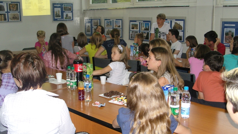 Učiteljica je v program, poleg učencev, vključila starše in goste, ki so prišli na zaključno uro. Izprašala jih je o Sloveniji - o značilnostih in o znanih stvareh dežele njihovih prednikov. Tudi odrasli so se veliko naučili, ko so odgovarjali na vprašanja. Takrat se nam je pridružil predstavnik Ambasade Slovenije v BiH Matija Bučar s svojo soprogo.