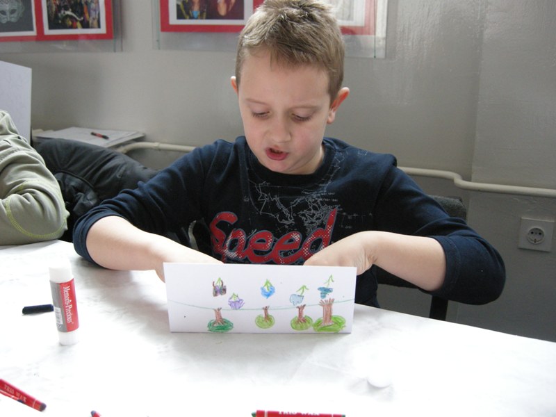 V delavnici, ki sta jo vodili Aleksandra in Marina, so otroci barvali pirhe – ne čisto pravih, ampak kar take iz papirja, nalepili so jih na karton, da so nastali lepi plakati. Franci je udeležence delavnice naučil, kako lahko iz testa oblikujejo zajčke in preste, pod spretnimi otroškimi prsti pa so nastale še ribe. Vse to so tudi spekli in nekateri so svoje umetnine kar takoj pojedli. V četrti delavnici smo ustvarjali vabila za predstavo Moj dežnik je lahko balon. Predstavo bodo pripravili učenci dopolnilnega pouka slovenščine pod vodstvom lutkarjev Jelene Sitar in Igorja Cvetka. Že zdaj vas vse vabimo, da 12. maja skupaj z nami odletite v deželo Klobučarijo. Predstava bo v mestnem gledališču Jazavac ob 11.00.
