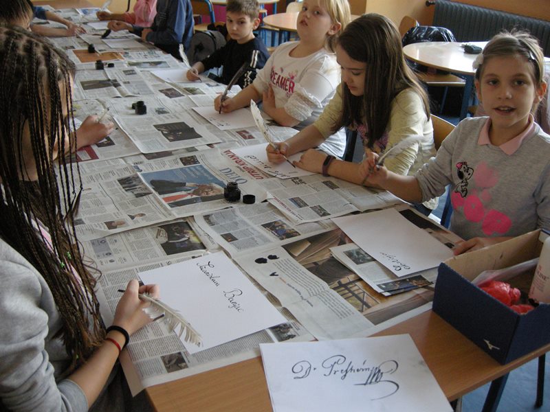 Z nami sta bili kustosinji Gorenjskega muzeja Kranj Anja Poštrak in Barbara Kalan. Na Osnovni šoli G. S. Rakovski sta izvedli tri delavnice za otroke in mladostnike. Učenci so pisali z gosjimi peresi, barvali so podobe oblačil iz obdobja romantike, ob zemljevidu Gorenjske so prizore iz Prešernovega življenja umeščali po krajih (npr. rojstna hiša, Prešernovo gledališče, Prešernov gaj, Prešernov trg …).