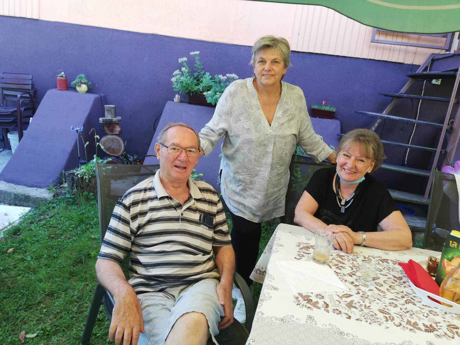 Ispoštovali smo vse odredbe in naše želje, da se po nekaj mesečnem nevidenju s Stankom ponovno vidimo. Obiskale smo ga, Marija Mira in Nataša. Bil je to lep sončen dan, dan za prijetno druženje. Na vratih nas je prvi pozdravil mali kužek, čuvar, ta nas pozna že od naših prejšnih obiskovanj, a takoj za njim nasmejan Stanko. Mislim, da je bil močno vesel našega obiska. Takoj nas je usmeril v vrt Prosenovih, kjer nas je čakala miza obložena s slanimi in sladkim zalogaji, ki jih je pripravila Stankova Dana, njegova zvesta življenska sopotnica. V čudovitem pravljičnem ambientu vrta, kjer vsako steblo dreves krasijo ptičja gnezda s čudoviti cvetni aranžmani, pokošen travnik, kočija v zapregi jelenov, morda žrebičkov, polno cvetja in bogato rodna vinska trta. Vse to vsako leto na novo kreira Dana. Bil je to dodatek za ugodno počutje in ležeren pogovor. Dve, morda tri ure ugodnega kramljanja so minile za tren. Govorili smo kot nekoč v mlajših letih, bili smo , veseli, verni samo času naše mladosti, a to je za naša leta, veliko.