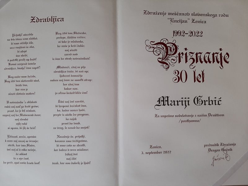 V soboto, 3. septembra, je v Zenici v prostorih Doma upokojencev potekala slovesnost ob 30-letnici delovanja Društva Slovencev »Encijan« iz Zenice ter 6. srečanje slovenskih društev v Bosni in Hercegovini.