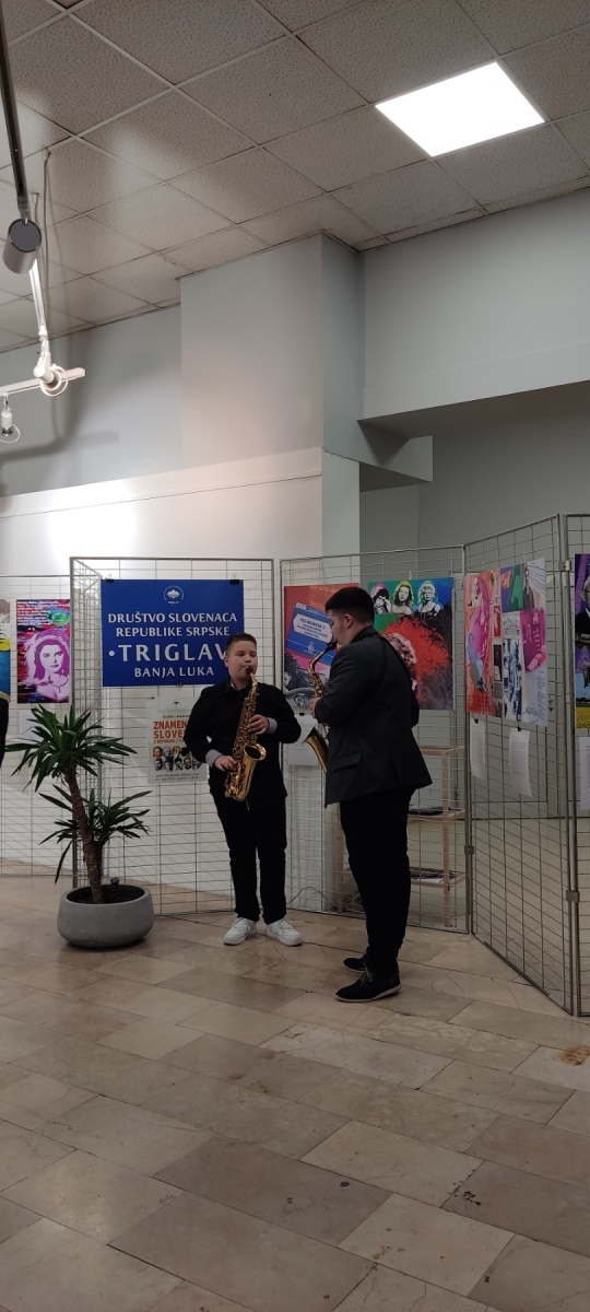 Vzdušje odprtja razstave sta z zvoki saksofona s svojim glasbenim nastopom obogatila mlada umetnika, brata Viktor in Pavle Fedešin, ki sta učenca Srednje glasbene šole “Vlado Milošević” v Banja Luki v klasi profesorja Nevena Marinkovića. Predstavili so se z dvema skladbama “Take five” in “Blues walk”.