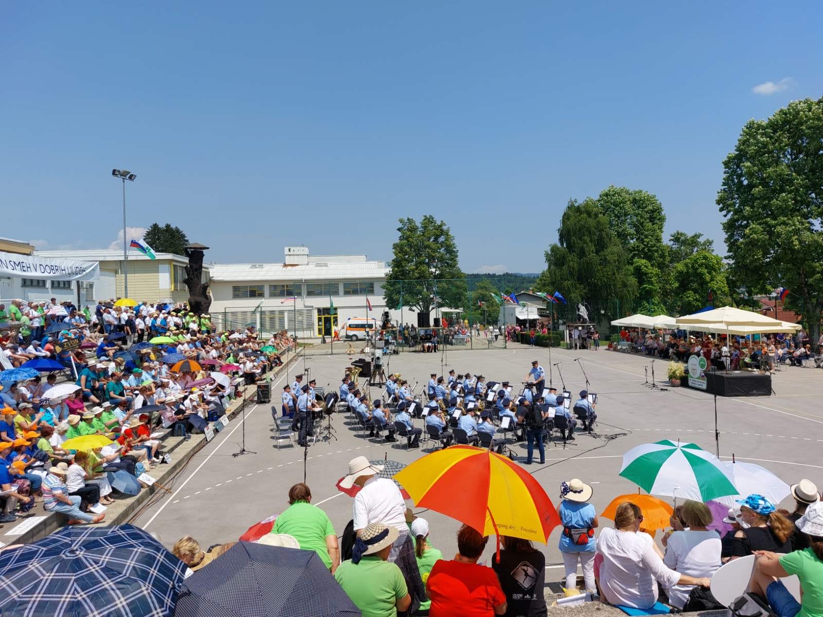Naslednji dan, 18. junija, so se vsi udeleženci srečanja skupaj z gosti udeležili skupnega nastopa na stadionu osnovne šole. Še posebej pester je bil sprevod udeležencev od Gasilskega doma do šolskega stadiona.