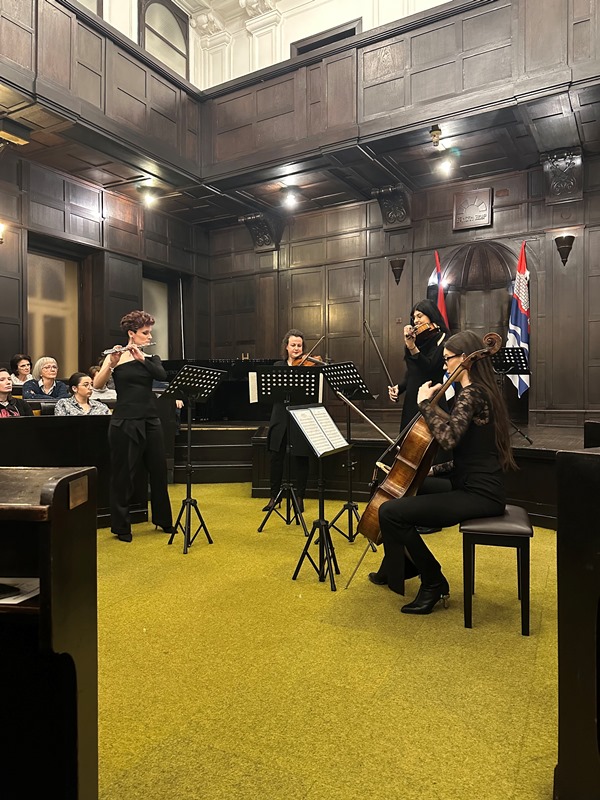Bernarda Pleša je pred začetkom koncerta podala uvod v prireditev ter vpogled v lik in delo Franceta Prešerna. Ob tej priložnosti smo se spomnili na delovanje Društva Triglav iz prejšnjega obdobja, ko sta na naših prireditvah in gostovanjih doma in v tujini nastopala »Trio fantastiko« in Otroški pevski zbor »Mladi Jenkovci«, katerih članici sta bili med drugimi Lidija Paulin in Sonja Vojvodić. Lidija Paulin je stalna članica od leta 2014, zdaj pa je vodja sekcije violončelov in solistka Sarajevske filharmonije. Nosilec je prestižnih nagrad in laureat na mednarodnih tekmovanjih in festivalih. Sodelovala je s priznanimi glasbeniki kot so: Aleksandar Serdar, Konstantin Bogino, Simon Trpčeski, Violeta Smailović-Huart, Eva Šulić, Kanae Endo, Vasily Shcherbakov, Wladimir Kossjanenko, Manhattan String Quartet, Deborah Wong in mnogi drugi. Nenehno se izpopolnjuje in gradi uspešno mednarodno kariero. Zadnji je letnik doktorskega študija v Beogradu ter dela tudi kot profesorica na banjaluški Akademiji umetnosti.