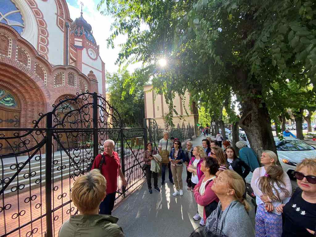 Drugi dan obiska Subotice je bil rezerviran za ogled mesta, ki ga je vodil Imre Šoti, gostitelj iz subotiškega društva. Obhod po centru mesta smo zaključili na Trgu Republike, kjer smo si privoščili daljši odmor za kavo zaradi dežja, ki je ravno takrat pričel padati v Subotici in nas spremljal ves preostanek dneva do vrnitve domov. Sprehod po tem čudovitem mestu, bogatem s hortikulturo in množico starih in monumentalnih zgradb, ki izstopajo po svoji arhitekturi, pročeljih in strehah, je pustil poseben vtis ob že omenjeni Mestni hiši, subotiški sinagogi, stavbi najstarejše Gimnazije v Srbiji, ki obstaja od leta 1747, modri fontani in fasadi vile Rejhl. Obisk v Subotici se je zaključil z ogledom znanega Palićkega jezera in Naravnega parka Palić, ki se nahaja ob tem največjem naravnem jezeru v Srbiji. Izvir tople vode ob jezeru so začeli uporabljati kot zdravilišče pred dvema stoletjema, svoj razcvet pa je to današnje izletišče doživelo na prelomu iz 19. v 20. stoletje. Sprehod po promenadi Palić je občasno zmotil vztrajen dež, a smo si vseeno uspeli ogledati delček lepote tega čudovitega kraja, čeprav pravijo, da kopanje v jezeru zaradi onesnaženosti ni priporočljivo.
