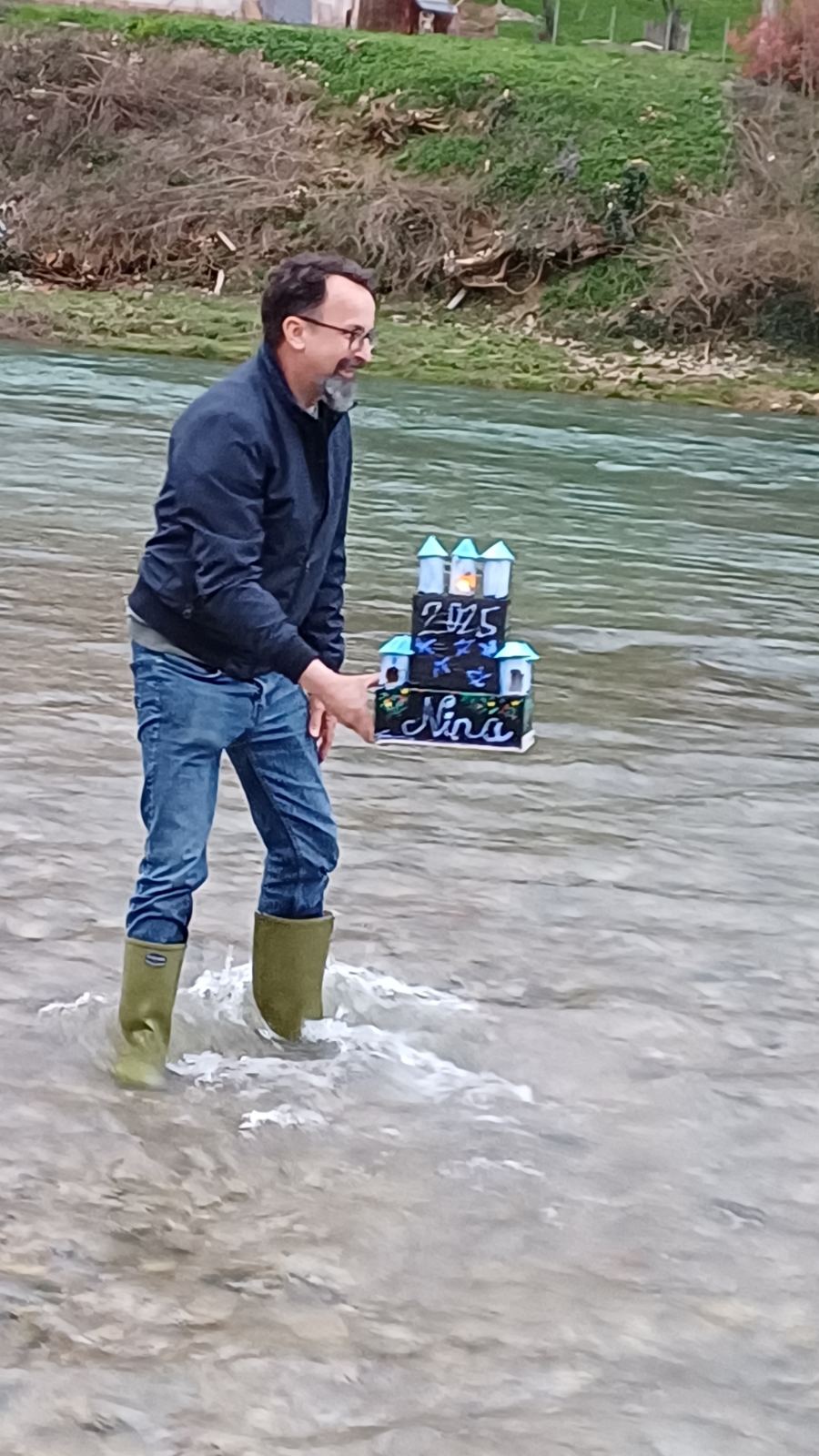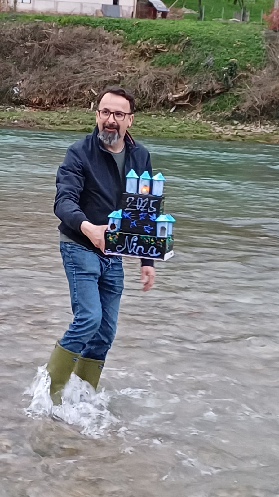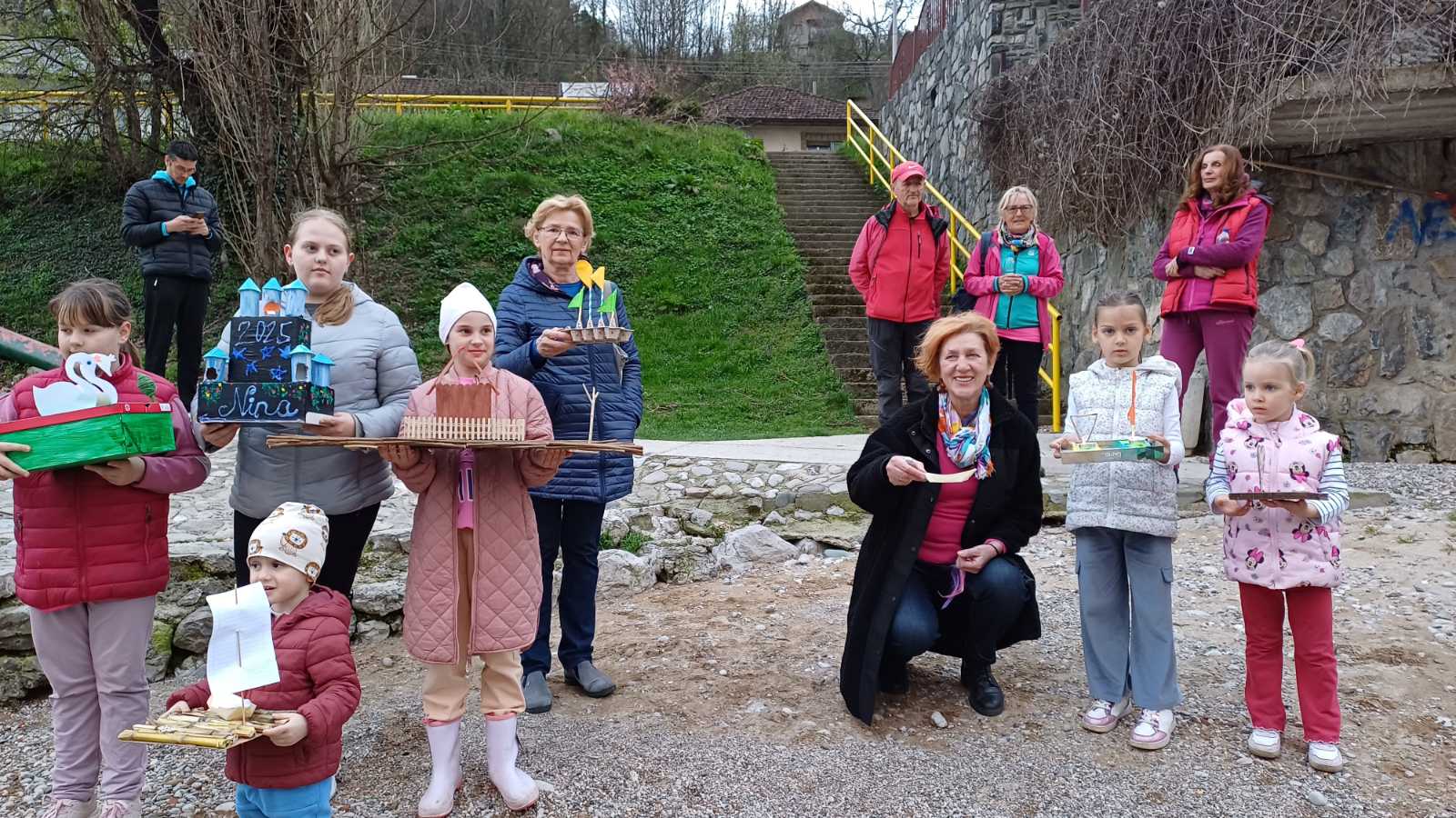 Zato smo se v nedeljo, 23. marca 2025, ob 17.30 zbrali ob reki Vrbas nekateri člani društva Triglav, starejši udeleženci dopolnilnega pouka slovenščine, predvsem pa mlajši učenci, katerih naloga je bila, da doma, iz okolju prijaznih materialov, izdelajo ladjice – gregorčke. Učenke so prinesle domiselne, s polno domišljije in otroške kreativnosti izdelane ladjice, opremljene s čajnimi lučkami. Ko je sonce pričelo zahajati, smo prižgali lučke, vsak otrok je vzel v roke svojega gregorčka in ga s ponosom podal predsedniku društva Mladenu Luniću, ki je opremljen z visokimi gumijastimi škornji ponesel vsako ladjico s prižgano lučko na sredino reke Vrbas in jo spustil v deročo vodo. Zbrani smo bili priča čudovitemu prizoru pisanih ladjic, ki jih je reka nosila sem ter tja …