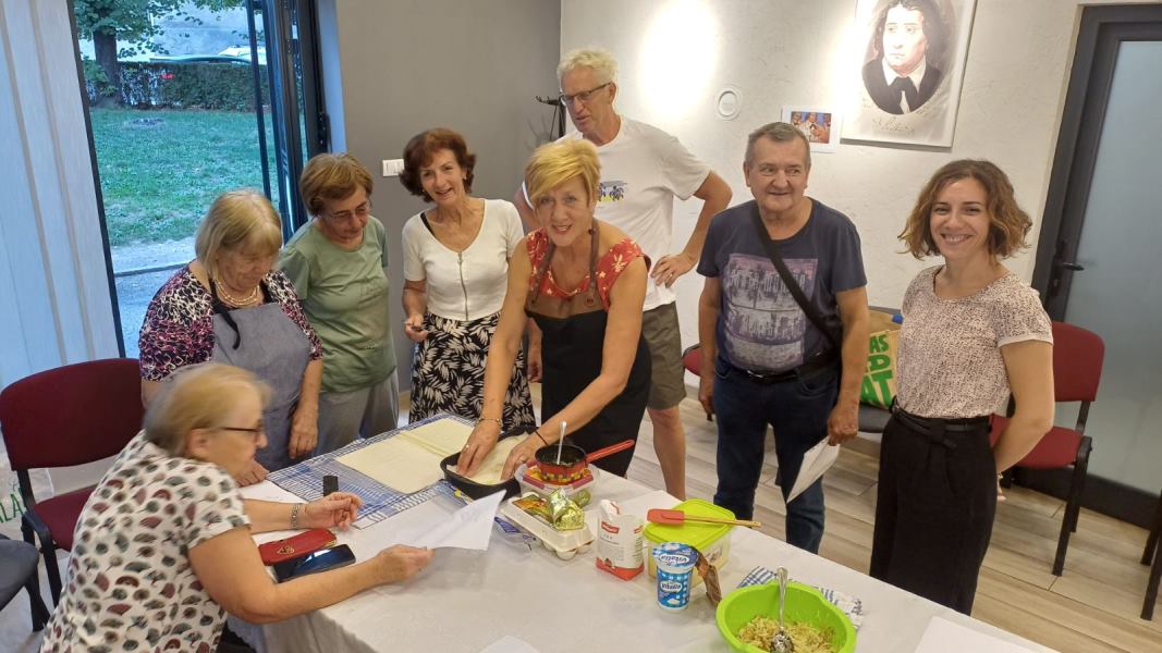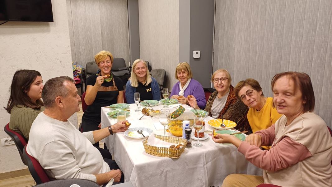 In tako pač gre na kulinarični delavnici, vsi imajo veliko idej in dobre volje, da bi bila delavnica čim bolj raznolika in polna pravih dobrot. Vsi udeleženci so z nami delili recepte in nasvete, kako vse te jedi uspešno pripraviti. Delavnica je bila zelo živahna, približno petnajst udeležencev je uživalo v kulinaričnih dobrotah, ki so jih pripravili naši vodje. Bila je tudi priložnost za povzetek rezultatov dela v letu 2025. Vsi smo se strinjali, da je bilo preteklo leto zelo uspešno in zanimivo. Zelo pomembno je, da se je veliko ljudi vključilo v različne dejavnosti: kulinarične delavnice, česnice, božična srečanja, humanitarne dejavnosti znotraj narodnih manjšin, zaključek dopolnilnega pouka slovenščine itd. In kar je še pomembneje, zanimanje za vključitev v delo te sekcije narašča. Sekcija je prav tako izdelala pano, na katerem so v slikah predstavljeni rezultati dela kulinarične sekcije v letu 2025. Delavnice so bile organizirane enkrat mesečno in so bile tematsko povezane z aktualnimi dogodki: