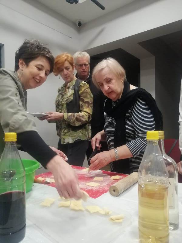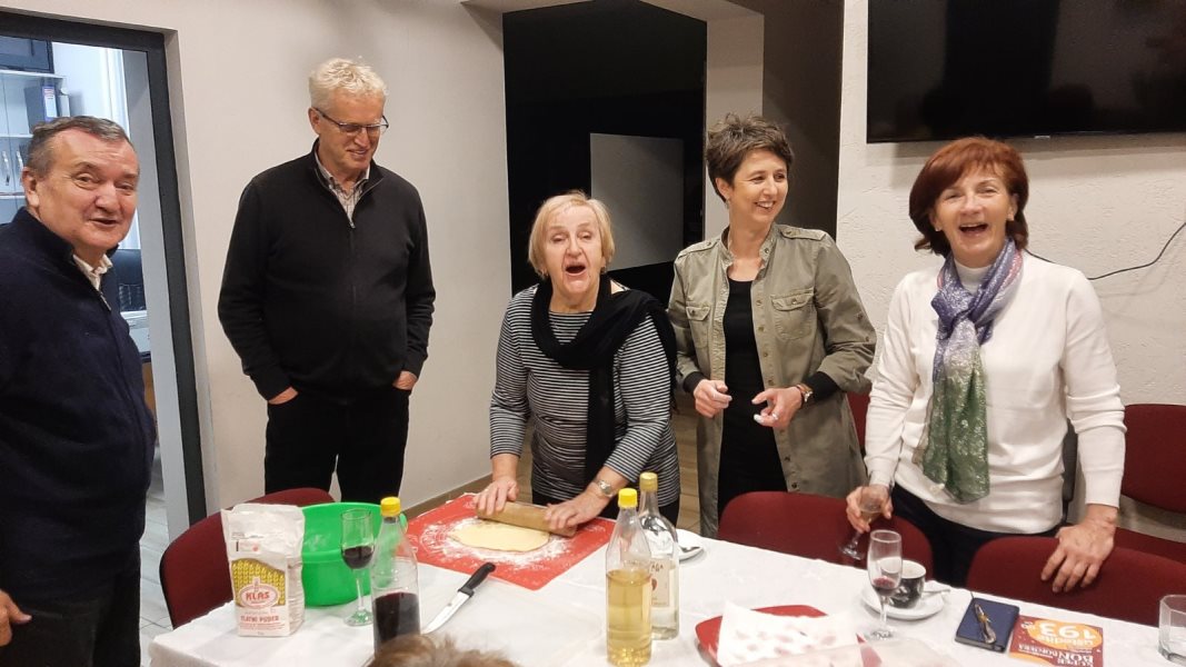 Brez težav smo se dogovorili, da bo prvo delavnico v letu vodila Olga Delić, ki nam bo razkrila skrivnost priprave kraljice slovenskih sladic – orehove potice. Ideja je bila, da se pogovarjamo ob kavi in sladkamo s potico. Draško Kelečević pa nas je želel pogostiti z domačimi kranjskimi klobasami, ki jih je sam izdelal. Ker se kranjske klobase najpogosteje jedo skupaj z dušenim kislim zeljem, se je ponudila Olga Suvajac, da ga pripravi in je tako zaokrožila pravi praznični obrok. Mladen Bijelić je takoj predlagal, da speče domači kruh. Kdo bi to lahko zavrnil?