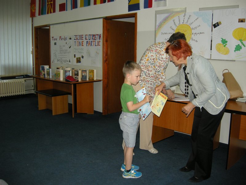 Gosta zaključne prireditve sta bila slovenski pisatelj Tone Partljič in direktorica Knjižnice Antona Tomaža Linharta Božena Kolman Finžgar. Tone Partljič je odličen pripovedovalec, zato sta bila oba večera, ki ju je preživel z nami, polna zanimivih zgodb in humorja. Vsako leto vidimo, da obiski ustvarjalcev puščajo sledi, in prepričano smo, da bo tako tudi letos. Otroci so uživali ob poslušanju, najbolj zabavno je bilo, ko so se mu pridružili pri gledaliških improvizacijah. Učenci so prejeli potrdila in pohvale, tisti, ki so pridno brali, so dobili tudi knjižne nagrade. Največ knjig je prebrala osmošolka Aleksandra Špehar, zato ji je Božena Kolman Finžgar podarila nagrado za sodelovanje v projektu Knjižnica – vesolje zakladov. Aleksandra Špehar, Ana Cucek in Nikša Perušič v tem šolskem letu niso niti enkrat manjkali pri pouku, zato so prejeli še posebne nagrade.