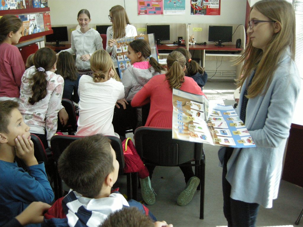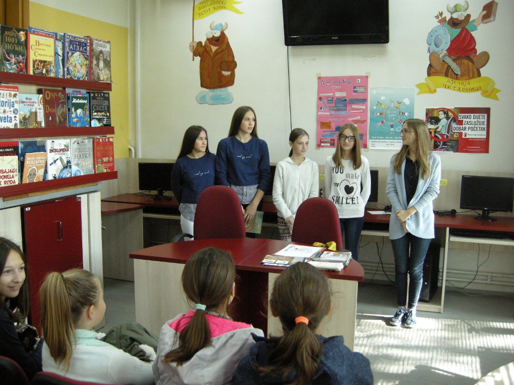 Evropski dan jezikov vsako leto praznujejo tudi v Narodni in univerzitetni knjižnici v Banjaluki, tokrat smo ga z učenci dopolnilnega pouka slovenščine obeležili v Otroški knjižnici Borik. Učenci slovenščine so učencem 6. razreda Osnovne šole Branko Ćopić predstavili pesmi slovenskih pesnikov Anje Štefan in Andreja Rozmana Roze. Po recitacijah so se obiskovalci razdelili v skupine, vsaka skupina je imela »pouk« z učenci, ki se že nekaj let učijo slovenščino. Razložili so jim pomen pesmi, predstavili so jim slovensko abecedo, naučili pa so jih tudi nekaj slovenskih besed. Prijetno druženje smo zaključili s pesmijo Oče škrat, ki jo je napisal Andrej Adamek. Učenci so se posladkali z bonboni in s tradicionalno slovensko slaščico – potico.