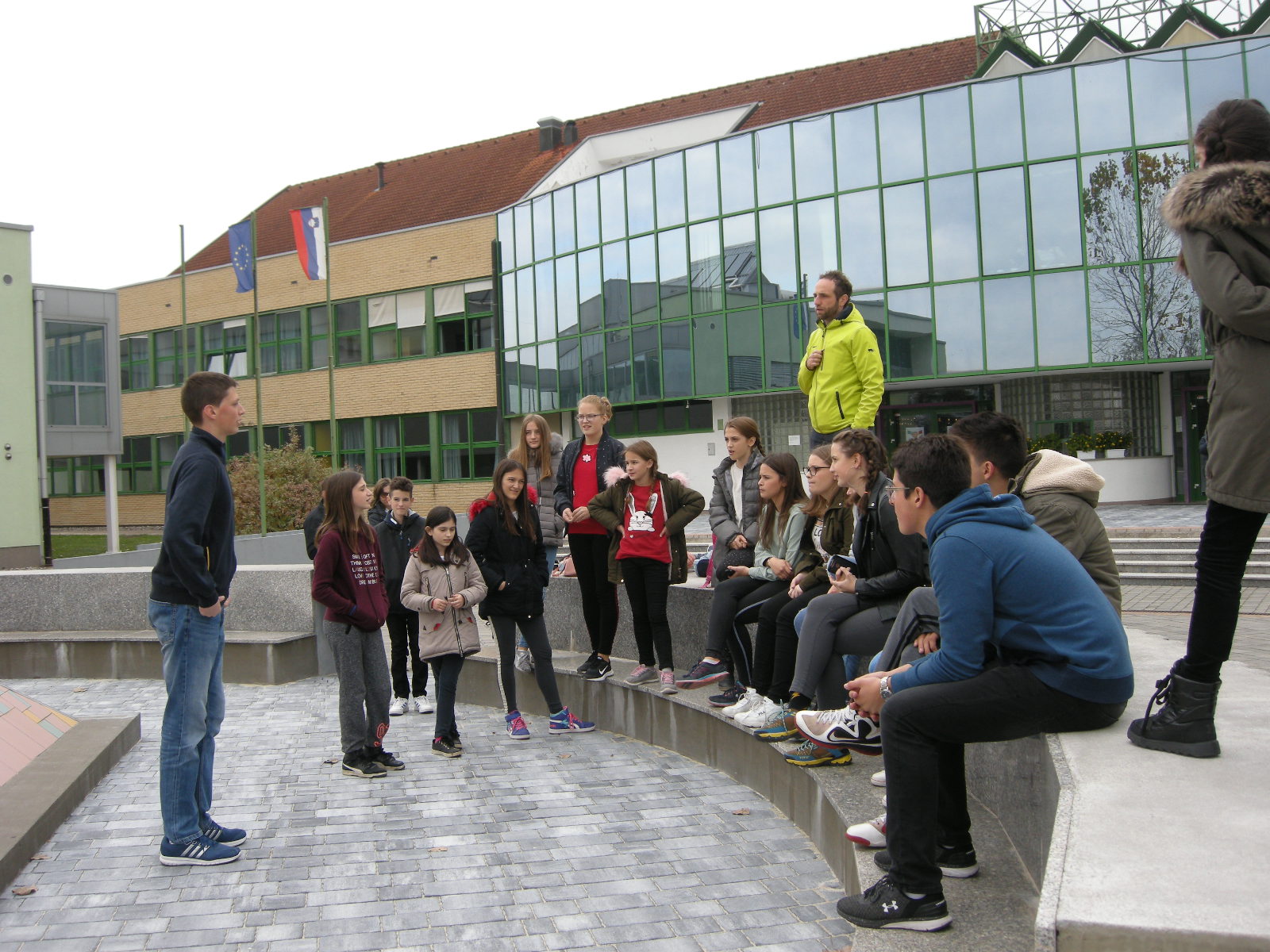 Še več časa za predstavitve je bilo v petek, 26. oktobra, ko smo se družili na Ekonomski in trgovski šoli v Brežicah. Pozdravila nas je ravnateljica šole Mojca Tomažin. Ves dopoldan je potekal bogat kulturni program, nastopila je tudi folklorna skupina Društva Slovencev Triglav Banjaluka. Tudi gostitelji, učenci in dijaki brežiških šol in OŠ Maksa Pleteršnika Pišece, so nam pripravili glasbene točke. Med nastopajočimi je bila Iva Potkonjak, ki je bila še preteklo šolsko leto učenka dopolnilnega pouka slovenščine v Banjaluki, zdaj pa obiskuje Gimnazijo Brežice. Gostje smo svoja mesta in društva predstavili na stojnicah, na delavnici smo popisali modre stole. Na temo Tudi moj dom je del Evrope smo ustvarjali že doma in zdaj smo si lahko ogledali fotografije, filme in likovna dela, ki so bila izbrana med poslanimi izdelki. Med njimi so bila tudi dela banjaluških učencev dopolnilnega pouka slovenščine.