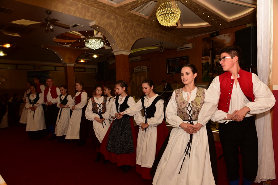 Začeli smo ob 19.30, tako kot je bilo predvideno. Prvi so nastopili člani pevskega zbora Društva Slovencev Triglav Davorin Jenko. Zbor, ki poje pod taktirko mag. Vanje Topić, je odlično popestril razpoloženje večera. Mladi plesalci folklorne skupine Društva Slovencev Triglav so odlično izvedli koreografijo, ki jo je pripravil njihov vodja Predrag Savić. Tudi Članica našega Izvršnega odbora Ana Marjanović je v lepem jedrnatem pozdravnem govoru obudila spomin na naše člane, ki so odšli v večnost, na ohranitev jezika, kulture in običajev, med katere sodi tudi proslavitev krsta vina.