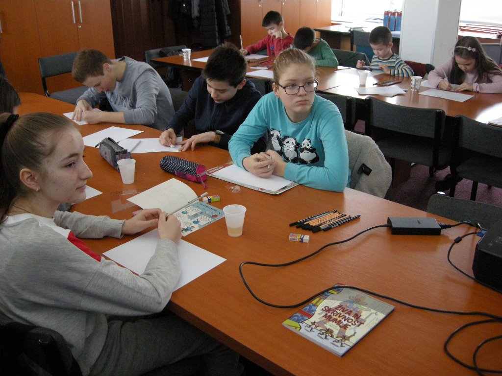Razstava Pot knjige potuje po šolah in knjižnicah, 8. februarja je prišla v Banjaluko, z njo pa avtorja Žiga X. Gombač in David Krančan ter vodja projekta Tjaša Urankar. Gostje iz Slovenije so v soboto, 9. februarja, v Klubu narodnih manjšin v Banjaluki pripravili dve literarno-likovni delavnici. Spoznavali smo pot knjige od avtorja do bralca, še posebej pa strip - od ideje do zapisa besedila in risanja ilustracij. Prva delavnica je bila namenjena osnovnošolcem, druga srednješolcem.