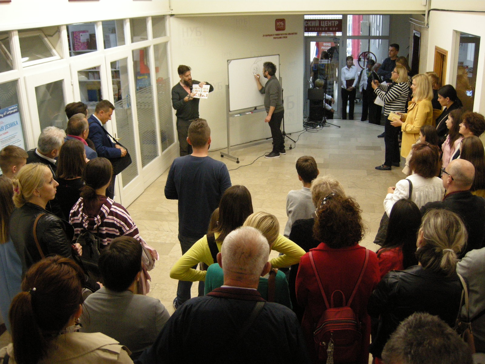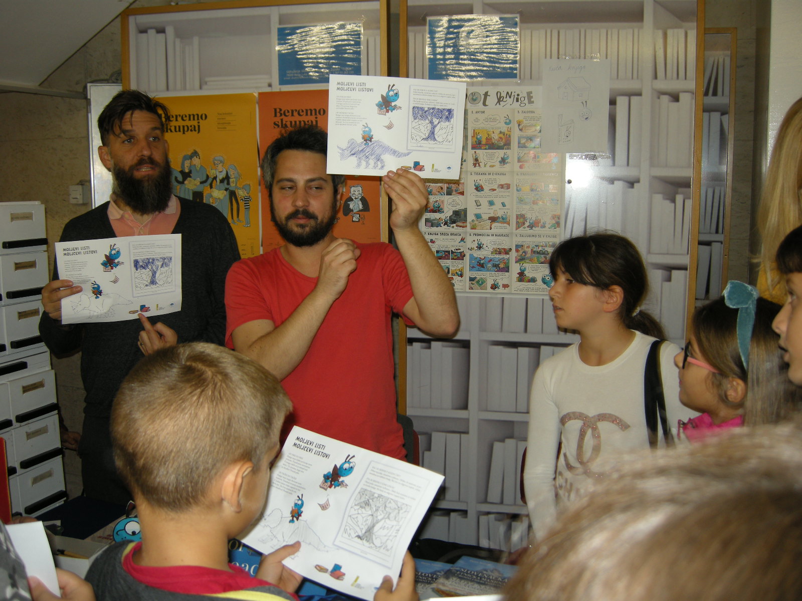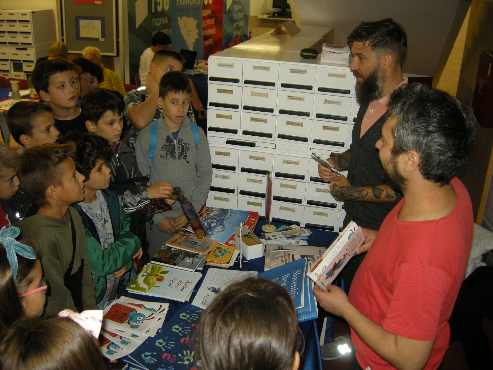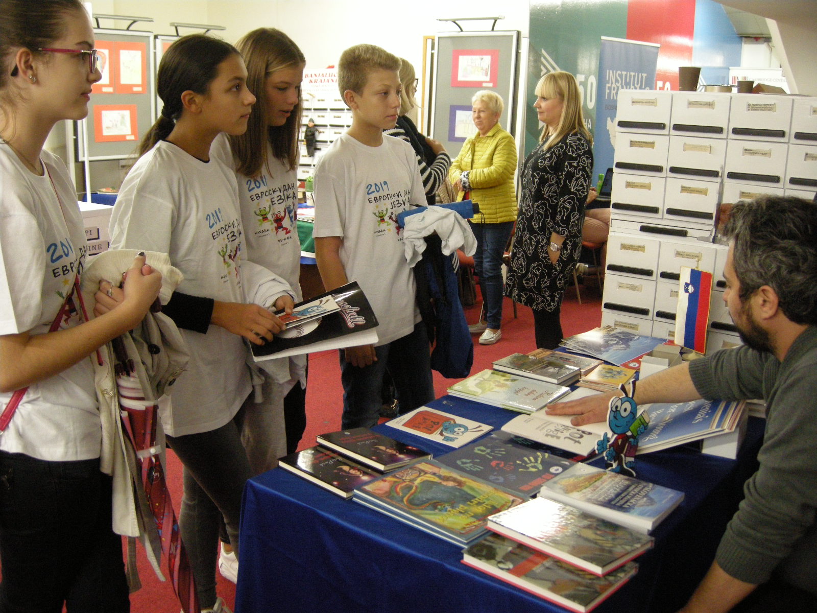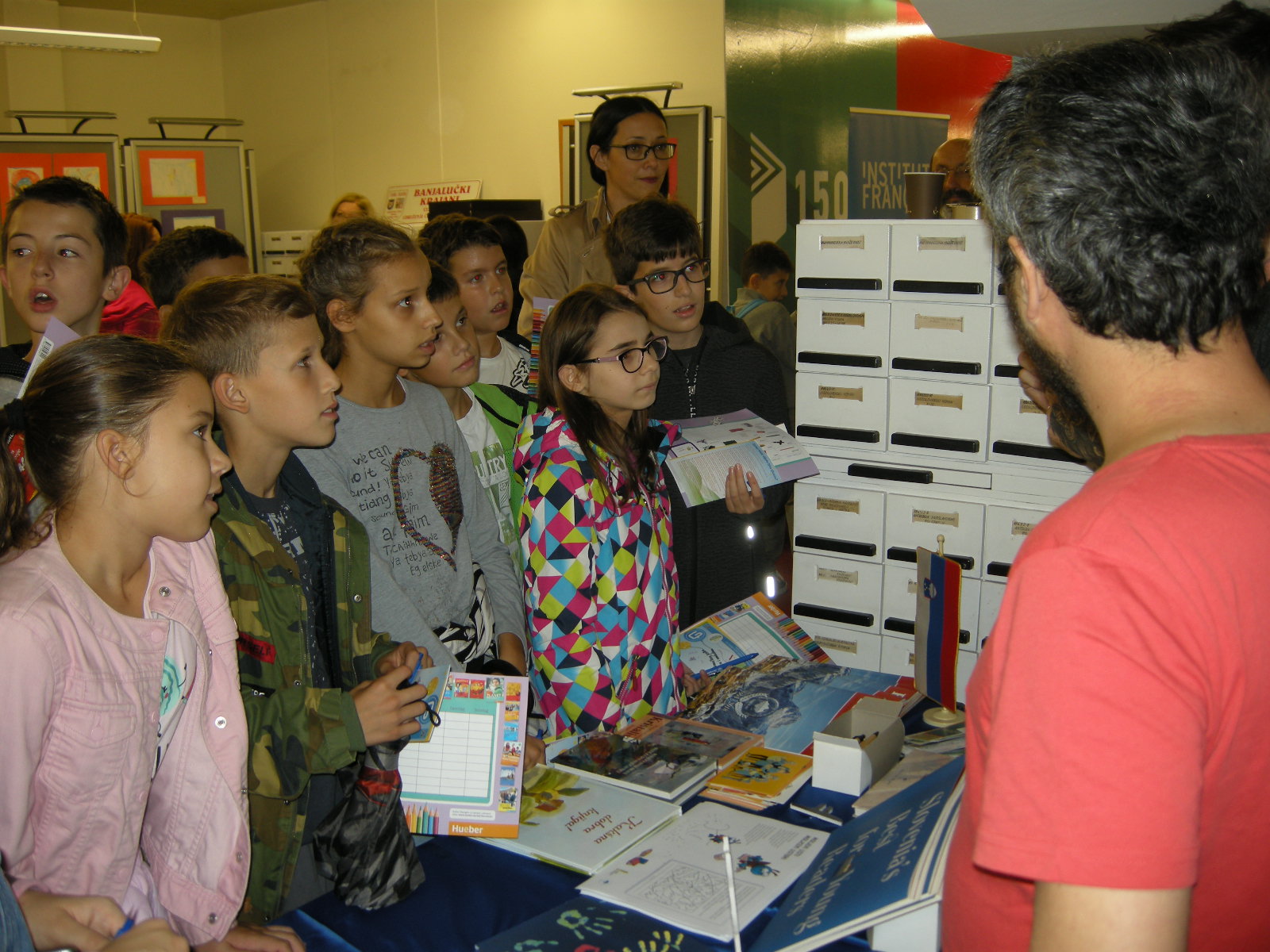 Pot knjige – Put knjige smo dopoldan predstavili na sejmu jezikov v Narodni in univerzitetni knjižnici v Banjaluki. Prvi so nas obiskali učenci 5. razreda Osnovne šole Branko Radičević z učiteljico Vanjo Perić. Avtorja Žiga X Gombač in David Krančan sta jim predstavila pot knjige od avtorja do bralca, učenci pa so reševali delovne liste. Ves dopoldan sta se avtorja srečevala z mladimi bralci, ki so z zanimanjem prisluhnili pripovedi o knjižnem molju. Ob 13.00 sta slovenska avtorja nastopila na prireditvi, ki je v Narodni in univerzitetni knjižnici združila govorce desetih evropskih jezikov: srbščine, nemščine, angleščine, francoščine, ruščine, grščine, španščine, italijanščine, češčine in slovenščine. Cilj evropskega dne jezikov je poudariti pomen večjezičnosti in eden izmed jezikov, ki zazvenijo na prireditvah v Banjaluki, je tudi slovenščina.