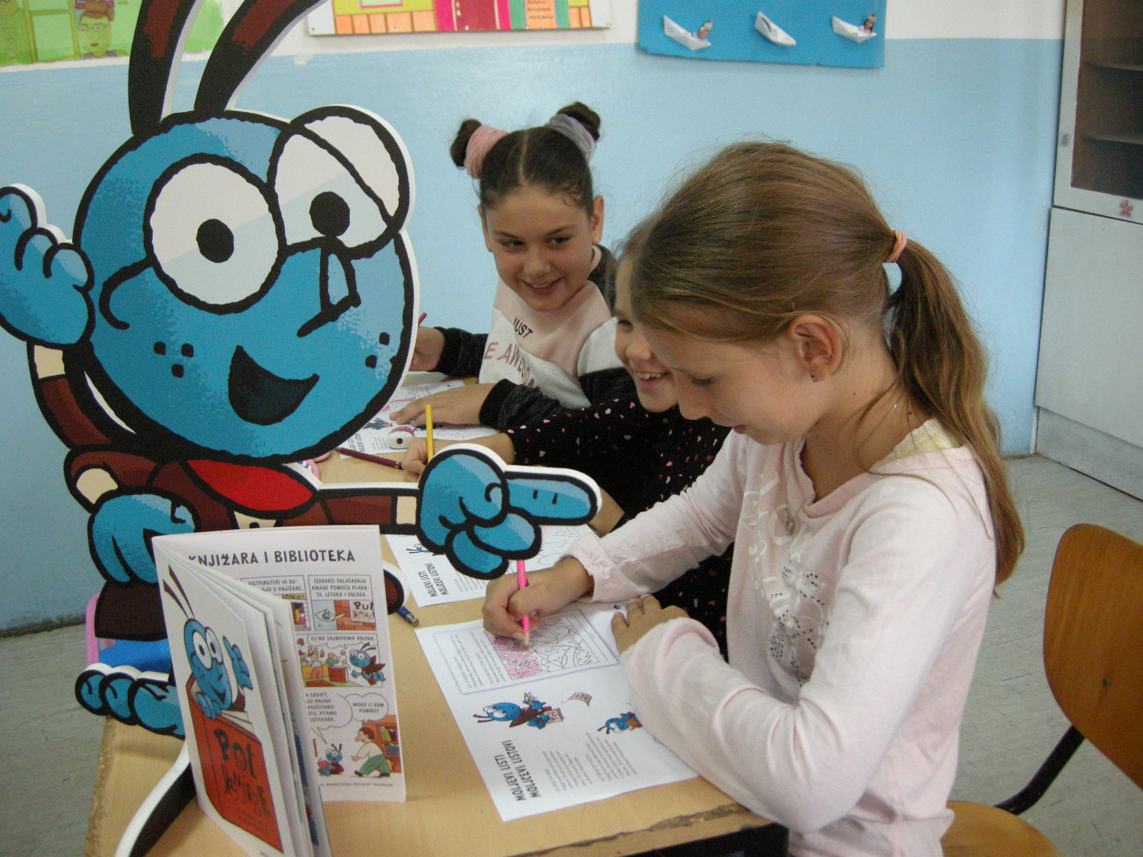 Maskota, ki nam predstavi, kako nastane knjiga, je prišla iz Ljubljane – iz Javne agencije za knjigo Republike Slovenije, zato je molj govoril slovensko. Učenci dopolnilnega pouka slovenščine Katja, Gabrijela, Lucija in Stefan so njegovo zgodbo prevajali v srbščino. Zgodba je zapisana v stripu Pot knjige, napisal jo je Žiga X Gombač, ilustriral pa David Krančan. Društvo Slovencev Triglav Banjaluka je poskrbelo, da imajo učenci, ki ne razumejo slovenščine, zdaj dvojezično izdajo te knjižice.