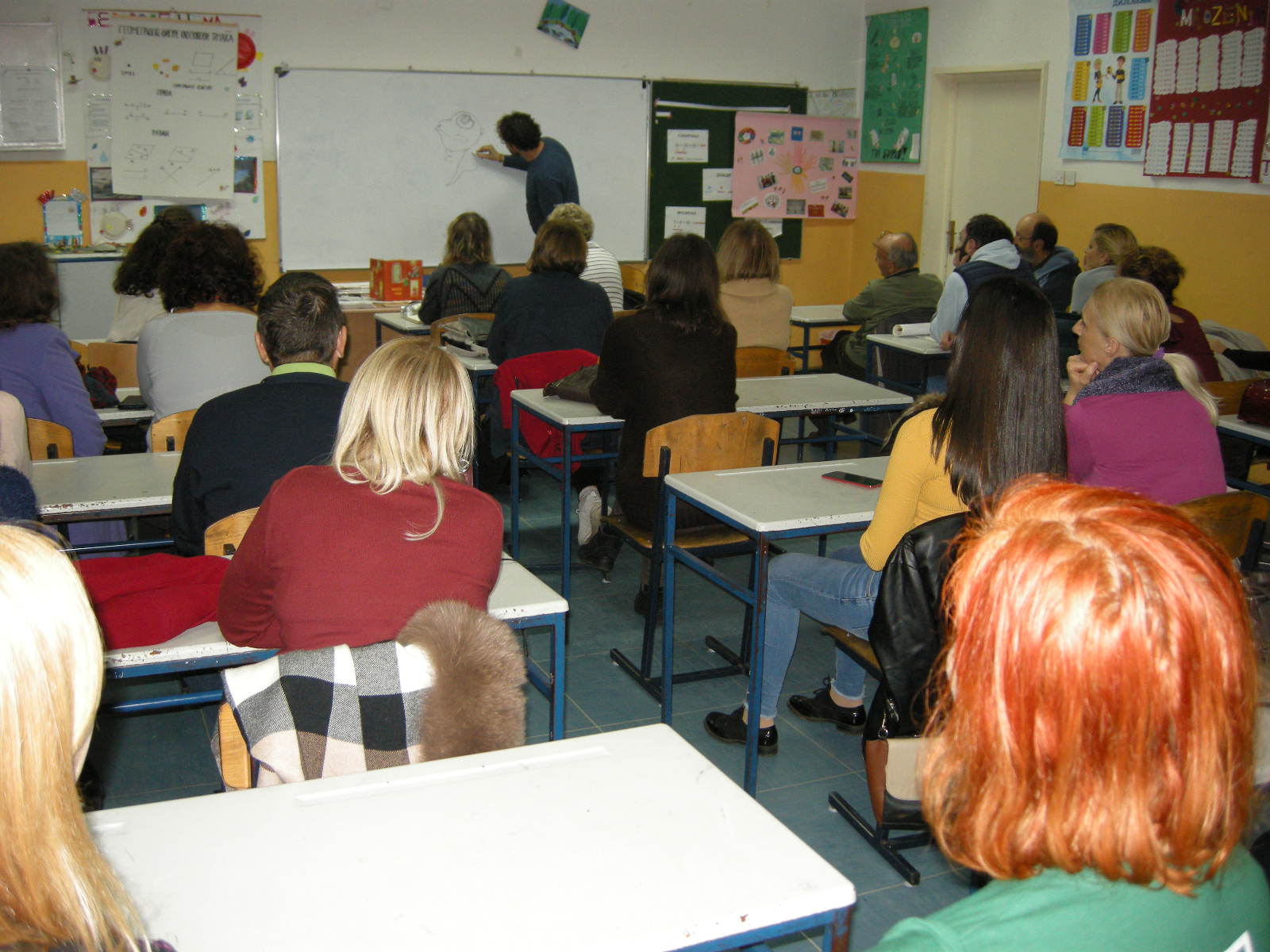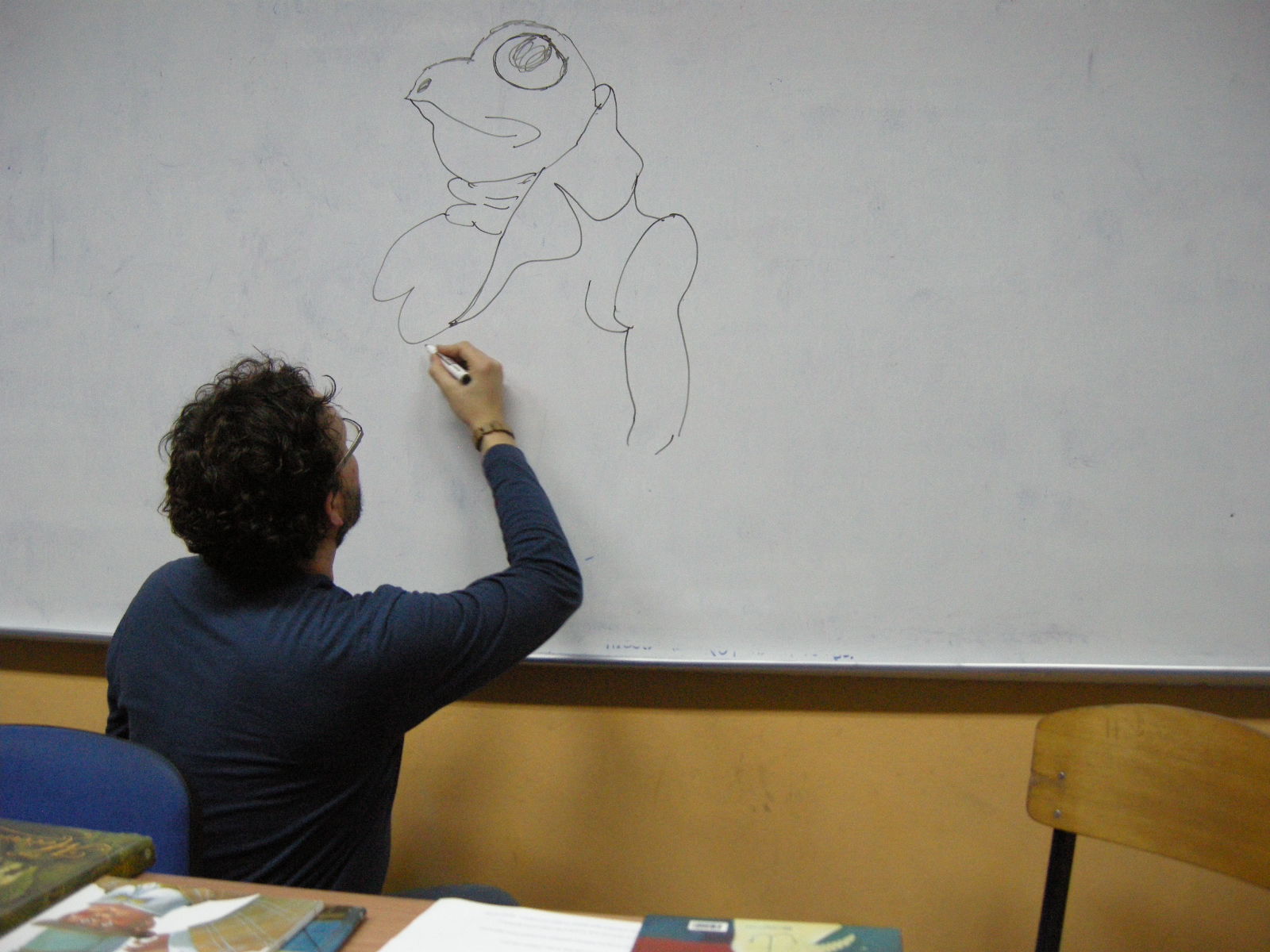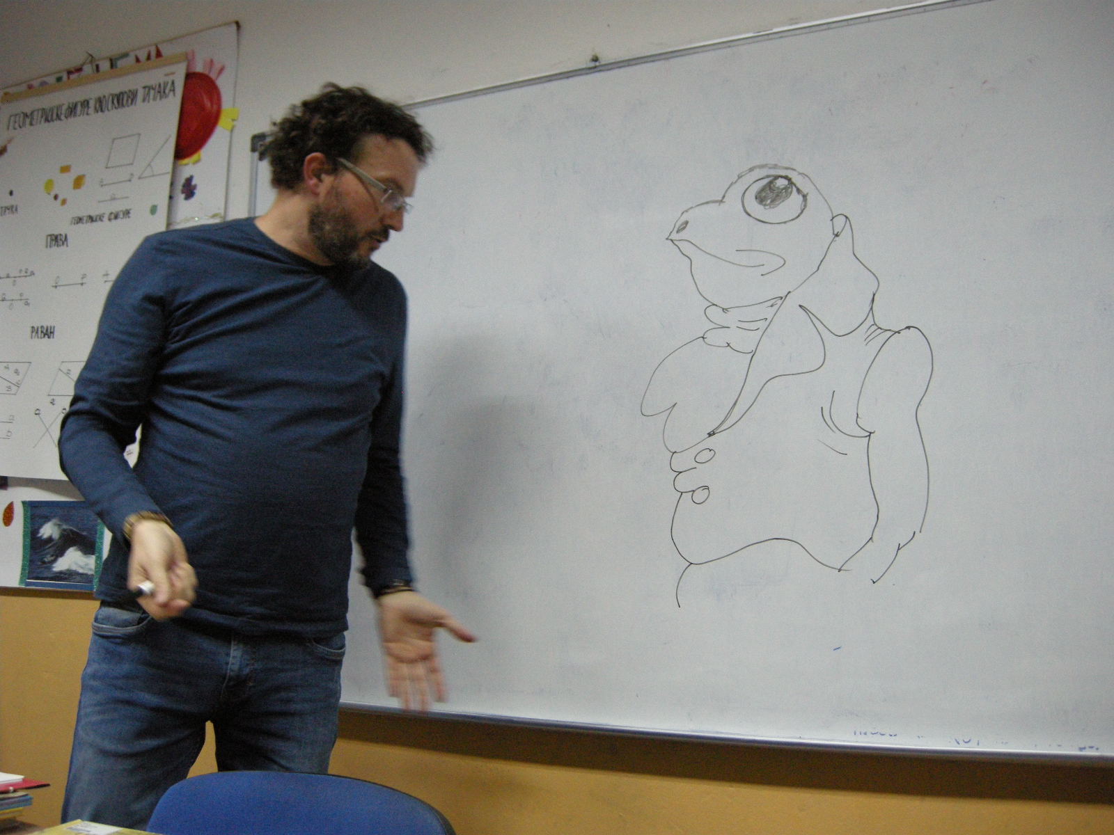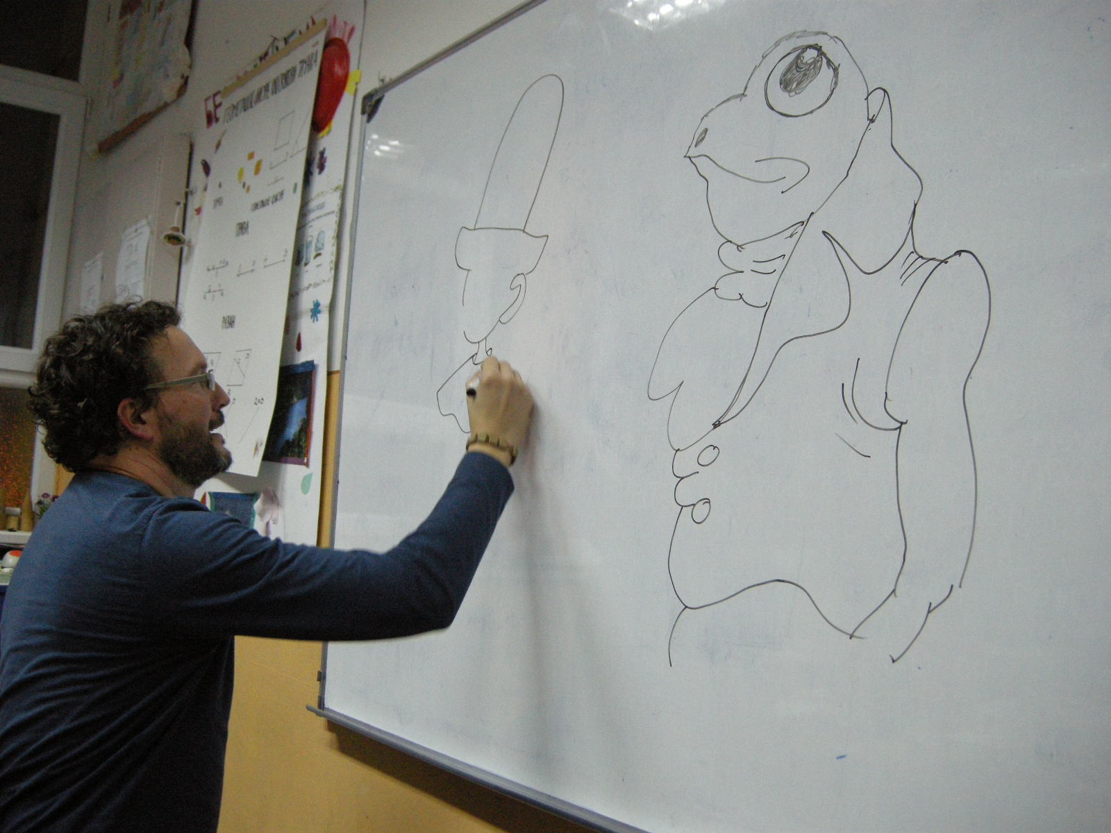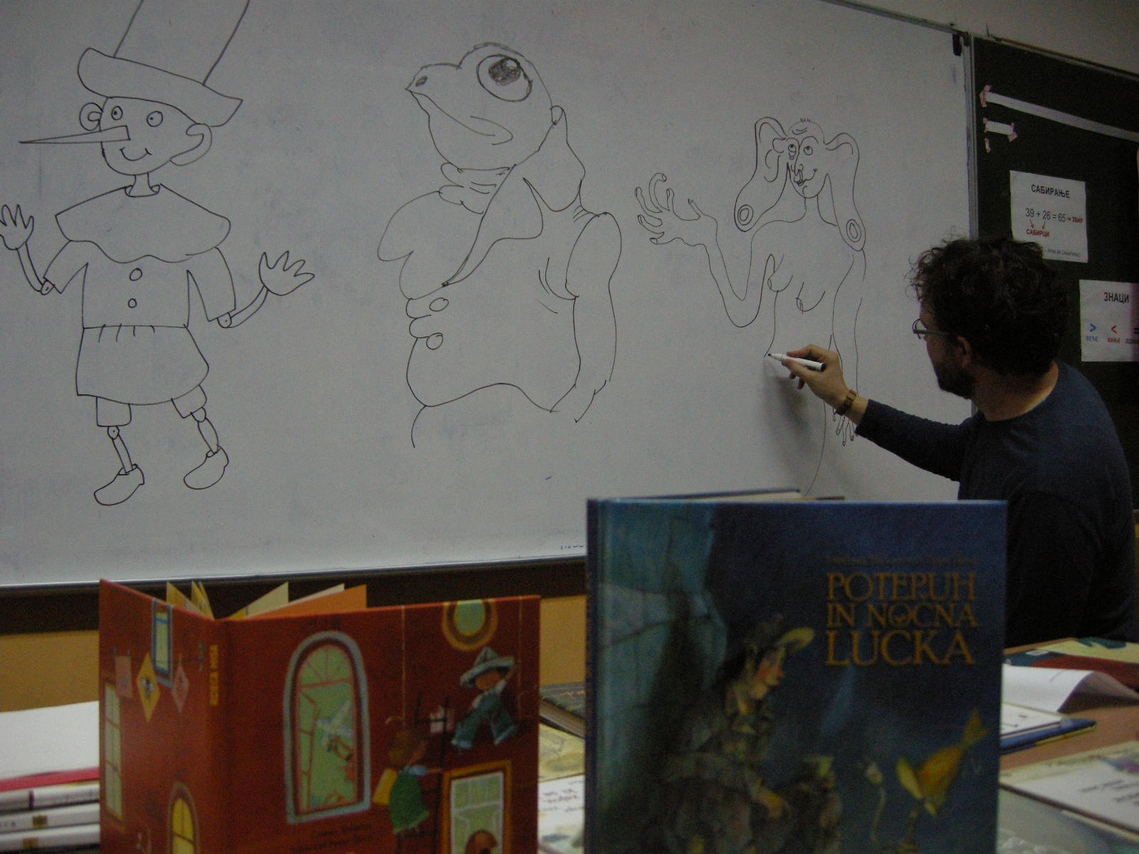 Slovenski ilustrator Peter Škerl se je v četrtek, 14. novembra, predstavil učencem dopolnilnega pouka slovenščine.