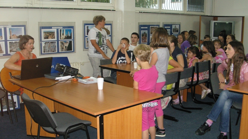 Učiteljica je v program, poleg učencev, vključila starše in goste, ki so prišli na zaključno uro. Izprašala jih je o Sloveniji - o značilnostih in o znanih stvareh dežele njihovih prednikov. Tudi odrasli so se veliko naučili, ko so odgovarjali na vprašanja. Takrat se nam je pridružil predstavnik Ambasade Slovenije v BiH Matija Bučar s svojo soprogo.